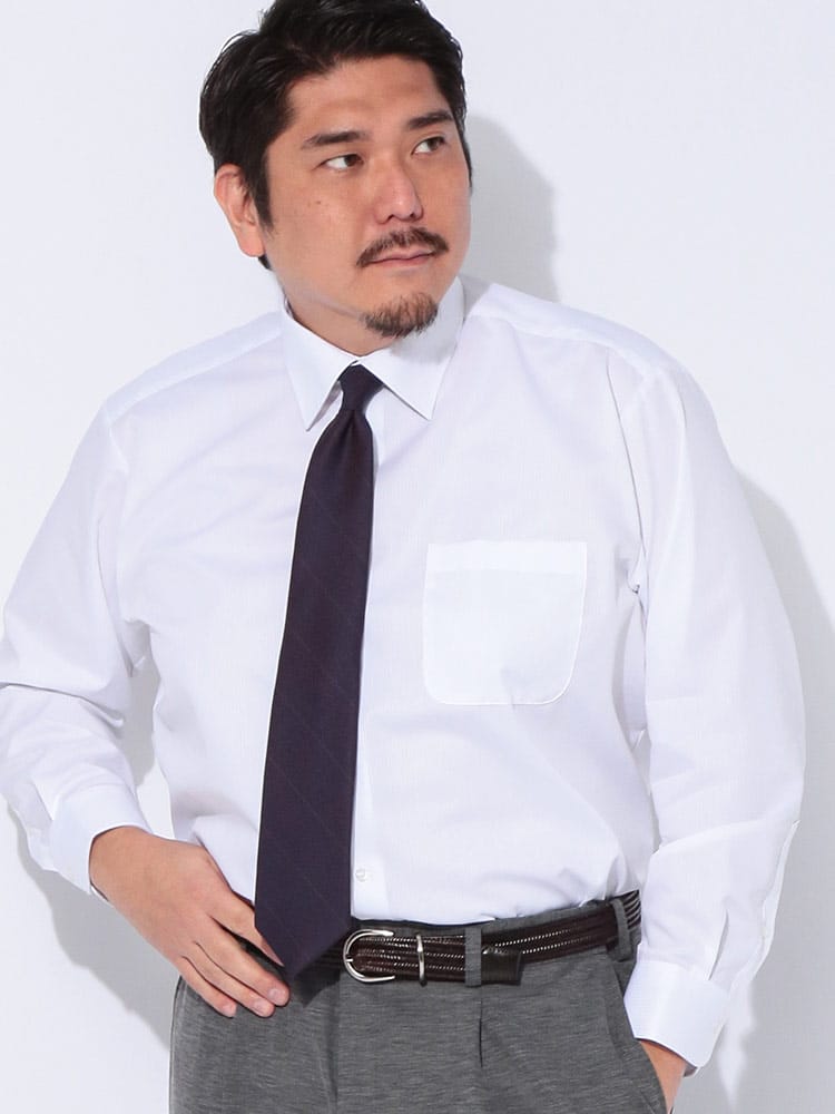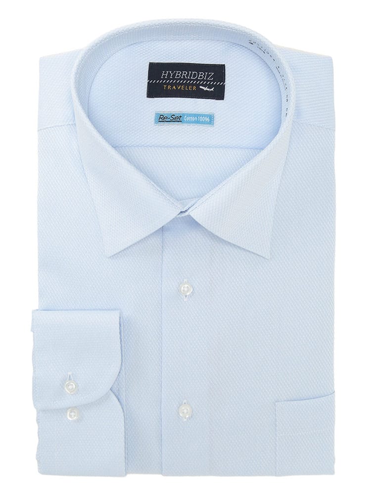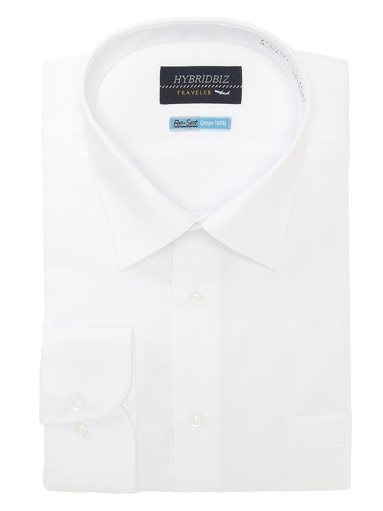 究極の快適性と品格を纏う、HYBRIDBIZ Re-Set ノンアイロンシャツ。多忙な現代のビジネスマンへ。綿100%の極上な肌触りと、驚異のRe-Set ノンアイロン機能を両立させた、HYBRIDBIZの自信作です。朝のひとときをアイロンがけから解放し、一日中清潔感のあるスマートなルックスをキープ。ゆとりのあるRELAXBODYとセミワイドカラーは、大きいサイズの男性にもリラックスした着心地とモダンな品格を与えます。オールシーズン活躍する形態安定コットン素材は、着るたびに心地よさを実感。胸元のポケットが機能性もプラスします。もうアイロンは必要ありません。あなたのビジネススタイルを格上げする、新定番の一枚です。