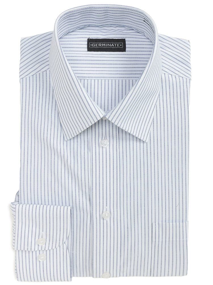 清潔感のあるストライプ柄が印象的な、GERMINATE(ジャーミネイト)のレギュラーカラー長袖ワイシャツです。標準的なBASIC BODY設計で、どんな体型の方でも快適に着用いただけます。最大の魅力は優れた形態安定加工。洗濯後もしわになりにくく、忙しい朝のアイロンがけの手間を大幅に軽減します。ビジネスシーンの定番として、デイリー使いに最適な機能性と美しさを兼ね備えた、頼れる一枚です。