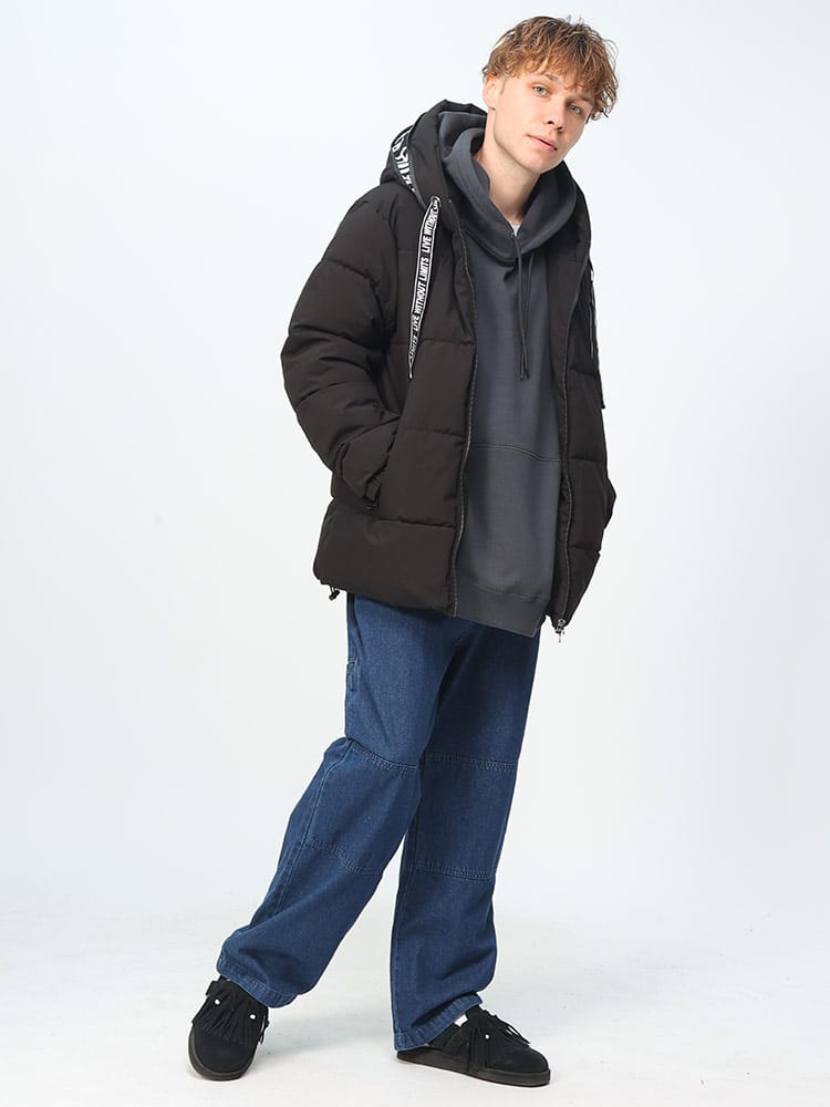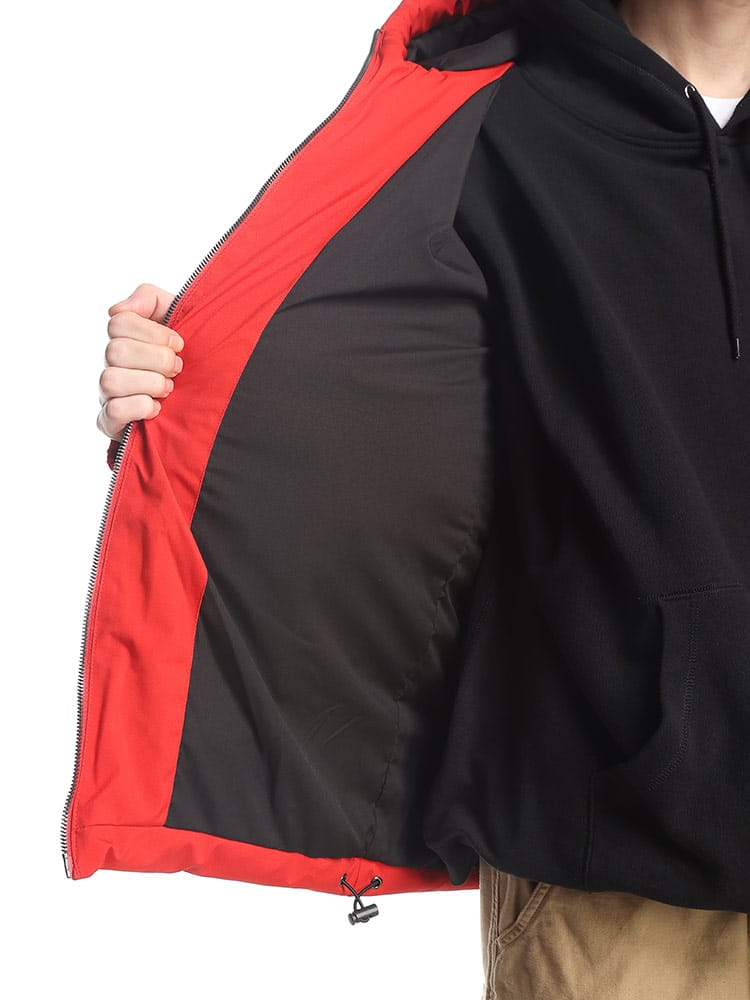 SUGGESTIONの撥水ストレッチフードロゴ中綿ジャケットは、動きやすいストレッチ素材を採用し、水をはじく撥水加工が施されています。フルジップで簡単に着脱可能で、フードには目を引くロゴがデザインされています。暖かさを保つ中綿入りで、裾のドローコードにより風の侵入を防ぎつつ、体型に合わせて調節できる機能性を備えており、アクティブなシーンでも快適に保てるアイテムです。