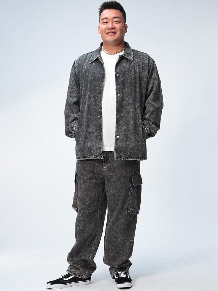 ケミカルウォッシュ加工が施され、独特な色落ちと風合いが魅力です。