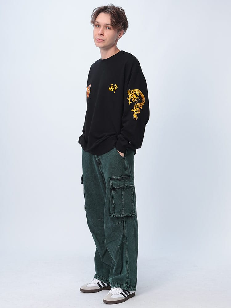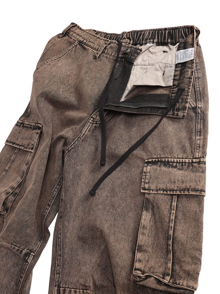 JUNGLE STORMのオーバーダイカラーデニムカーゴパンツは、ヴィンテージ感溢れるオーバーダイ加工が施されたデニムカーゴパンツです。耐久性に優れた素材を使用し、快適な履き心地を提供。複数のポケットがあり、実用性も抜群です。ミリタリーテイストを取り入れたデザインは、カジュアルスタイルやアウトドアシーンで活躍します。