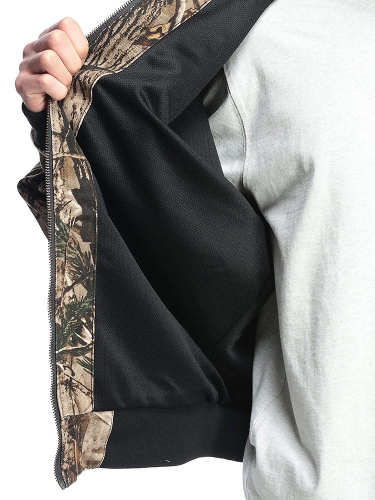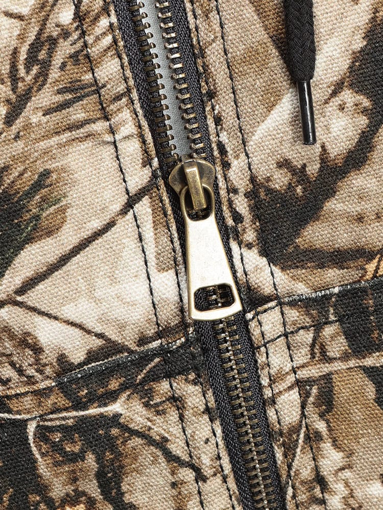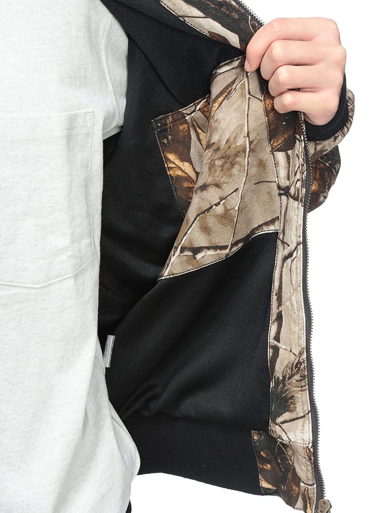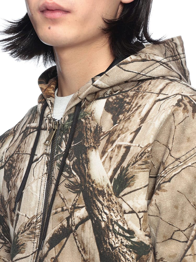 迷彩をまとう、アクティブなフードスタイル。タフな個性を宿す、JUNGLE STORMのフルジップパーカー。定番のアイテムを、全面に施されたアーバンなカモフラージュ柄でアップデート。ストリートはもちろん、アウトドアにも映える存在感抜群の一着です。総柄でありながら、フードや裾、袖口のリブが全体を引き締め、カジュアルながらも洗練された印象を与えます。さらに、快適な着心地をサポートする裏地メッシュ仕様で、アクティブなシーンでも快適さをキープ。外側には実用的な2つのポケットを配置し、使い勝手も考慮されたデザイン。デニムや無地のボトムスと合わせるだけで、トレンド感のあるタフなレイヤードスタイルが即完成します。