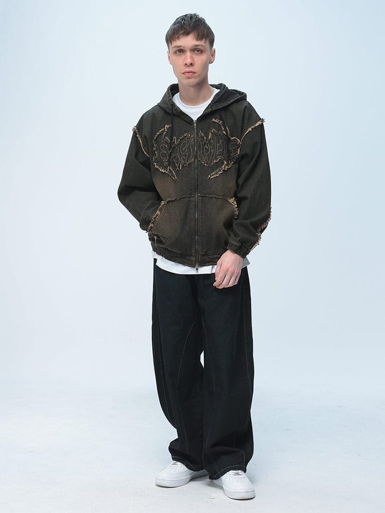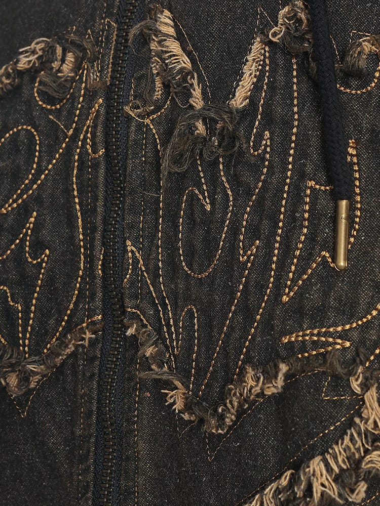 エッジの効いたストリートスタイルを提案する「BIKE STAR」から、独特の存在感を放つトライバルフリンジデニムフルジップパーカーが登場しました。ウォッシュ加工を施した柔らかなデニム生地を採用し、胸元や袖にあしらわれたトライバル柄のフリンジデザインが、唯一無二の個性を演出。ヴィンテージライクな風合いを楽しみつつ、ダブルジップ仕様によりシルエットの調整も自由自在です。両サイドには実用的なポケットを完備し、春先のライトアウターとしてTシャツの上に羽織るだけで、こなれたアメカジミックススタイルが完成します。細部まで拘り抜かれたデザイン性と快適な着心地を両立した、周囲と差をつけたい大人のための主役級デニムパーカーです。