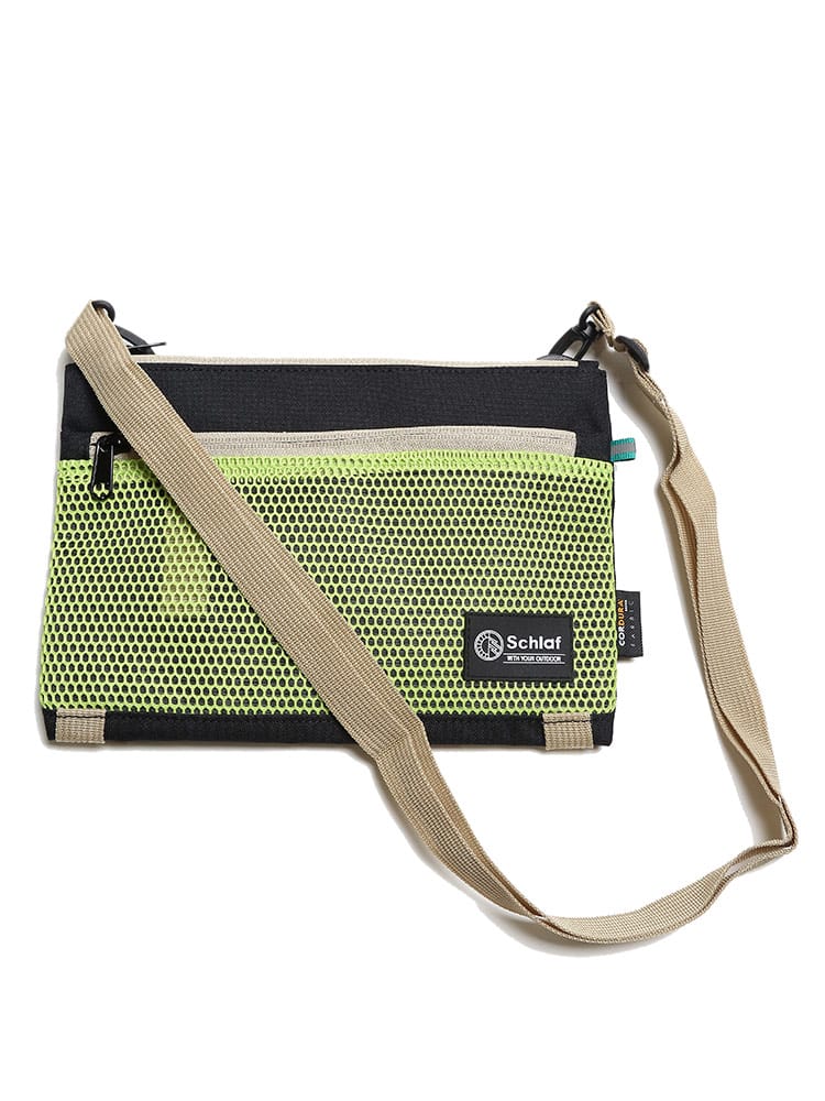 耐久性に優れたコーデュラを使用したメッシュ サコッシュ。フロントにロゴを配置したデザイン。撥水加工で雨や汚れを弾きやすく悪天候でも◎。フロントにメッシュポケット。コンパクトなボディでレジャーからタウンユースまでお使いいただけるおすすめのアイテム。