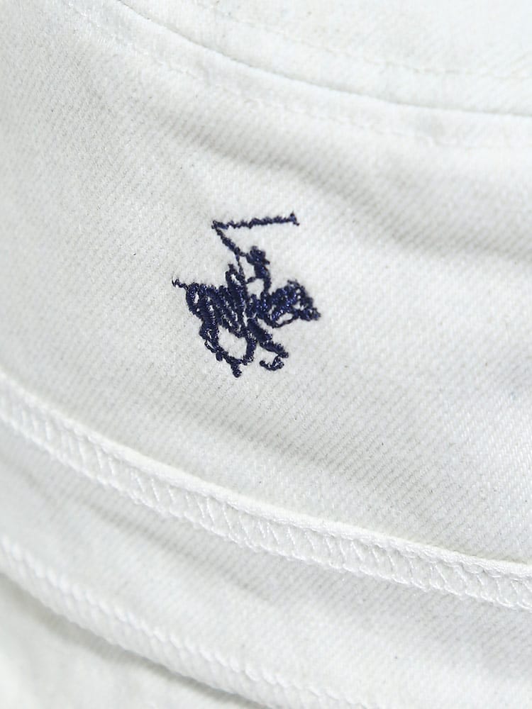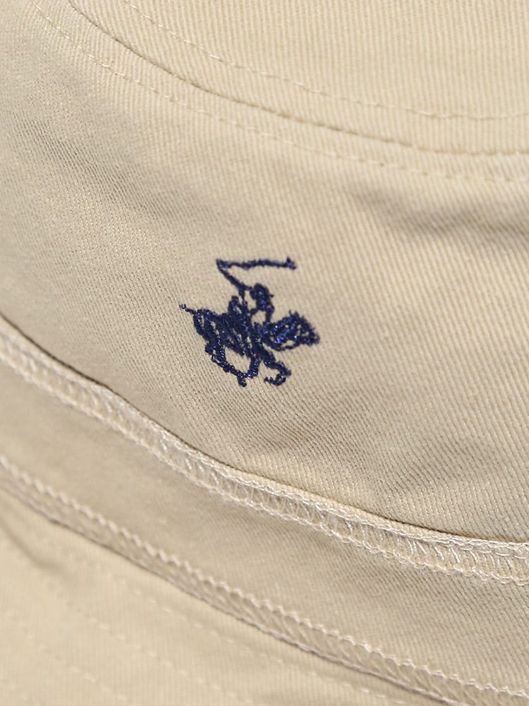 肌触りの良いツイル地で仕上げたBEVERLY HILLS POLO CLUBのワンポイント バケットハットです。ロゴ刺繍がポイントです。ツバにはワイヤー入りで好きな形に出来ます。普段のスタイルのプラスワンアイテムとしておすすめです。