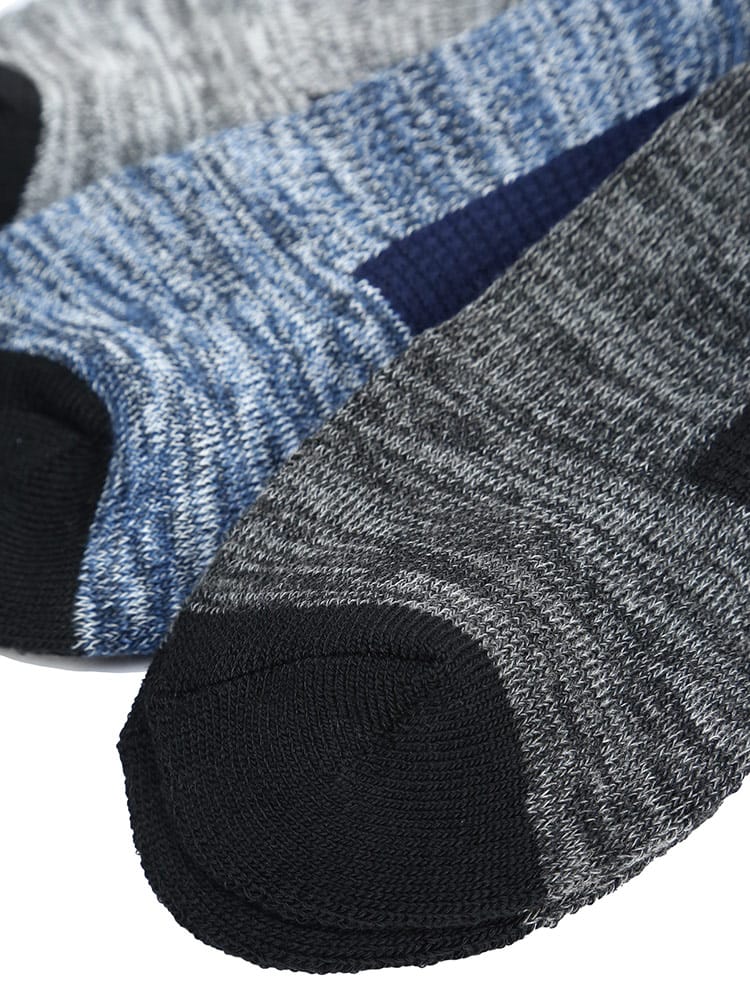 高い保温性を完備したワンラインのシンプルなクォータ丈 ソックス 3足セットです。DRYHEATを採用し、暖かさをキープしながら、蒸れにくさを実現。さりげないロゴ刺繍がいいアクセント。洗い替えに便利な3足セットでご用意。使いやすいカラーバリエーションでどんなシューズとも相性抜群です。