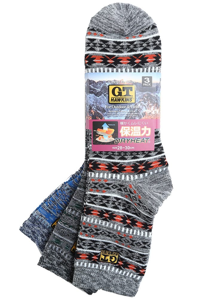 高い保温性を完備したノルディック柄がお洒落なクルー丈 ソックス 3足セットです。DRYHEATを採用し、暖かさをキープしながら、蒸れにくさを実現。さりげないロゴ刺繍がいいアクセント。洗い替えに便利な3足セットでご用意。使いやすいカラーバリエーションでどんなシューズとも相性抜群です。