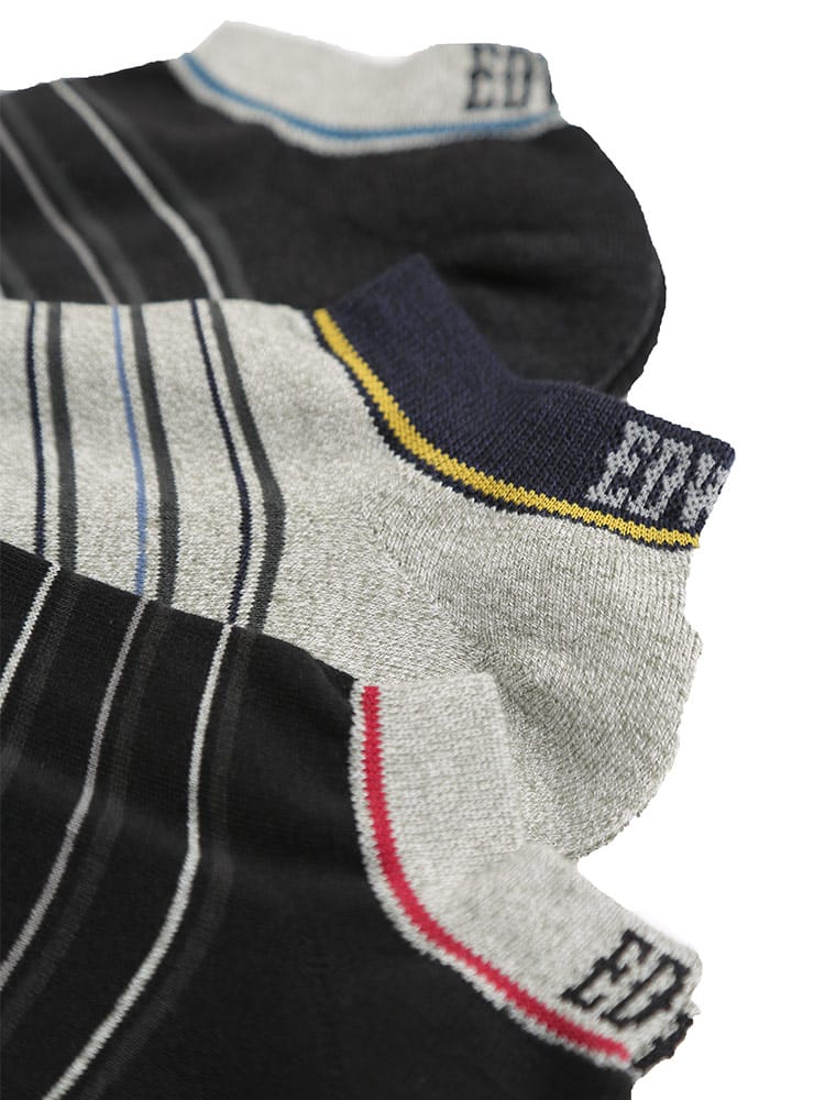 スニーカーやスリッポンに相性の良いEDWINのアンクル丈ソックス3足セットです。洗い替えに便利な3足セット。シンプルなラインデザインがお洒落。使いやすいカラーバリエーションでどんなシューズとも相性抜群です。