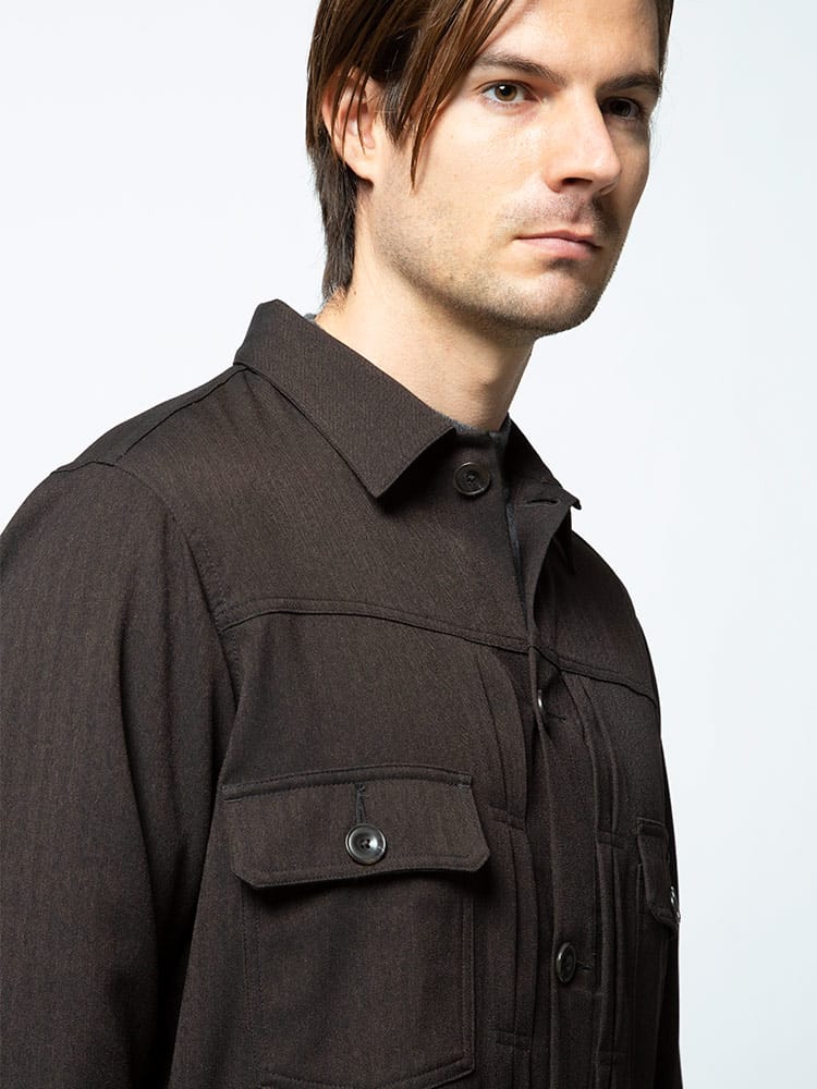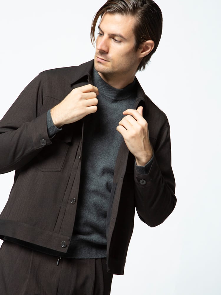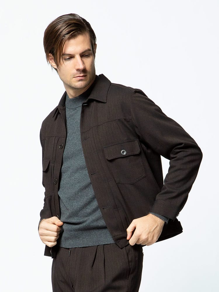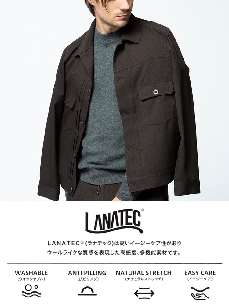 ナチュラルストレッチで快適な着心地のヘリンボン ポケット シャツジャケットです。フロントのポケットデザインがポイント。素材に高いイージーケア性があり、ウールライクな質感を表現した高感度、多機能素材のLANATEC(ラナテック)を使用しています。ウォッシャブルでご家庭でお手軽にお手入れ出来るのも魅力です。サッと羽織れるシャツジャケットで汎用性に優れています。