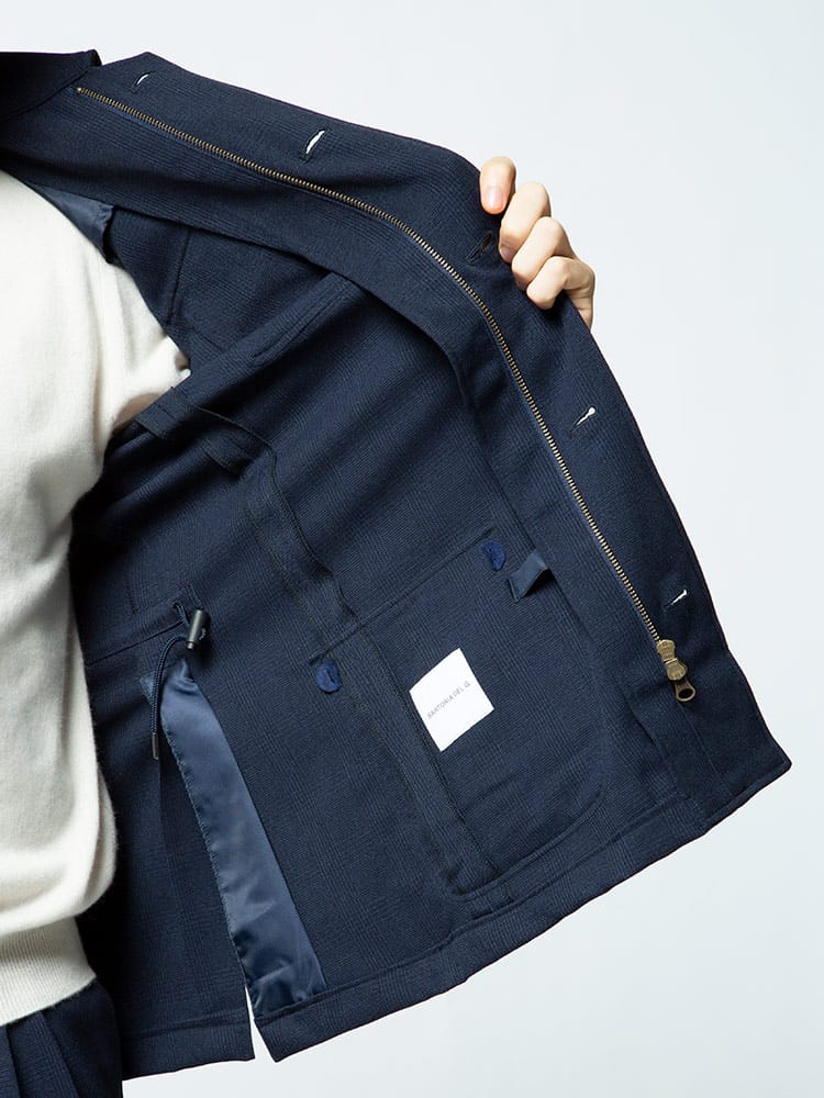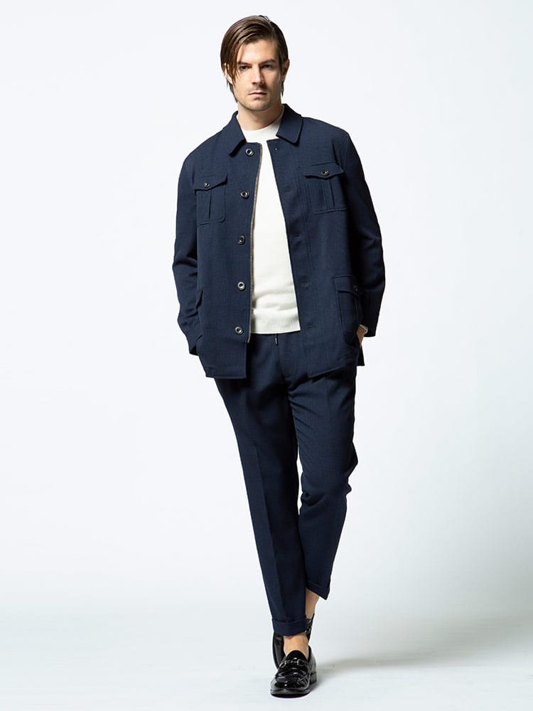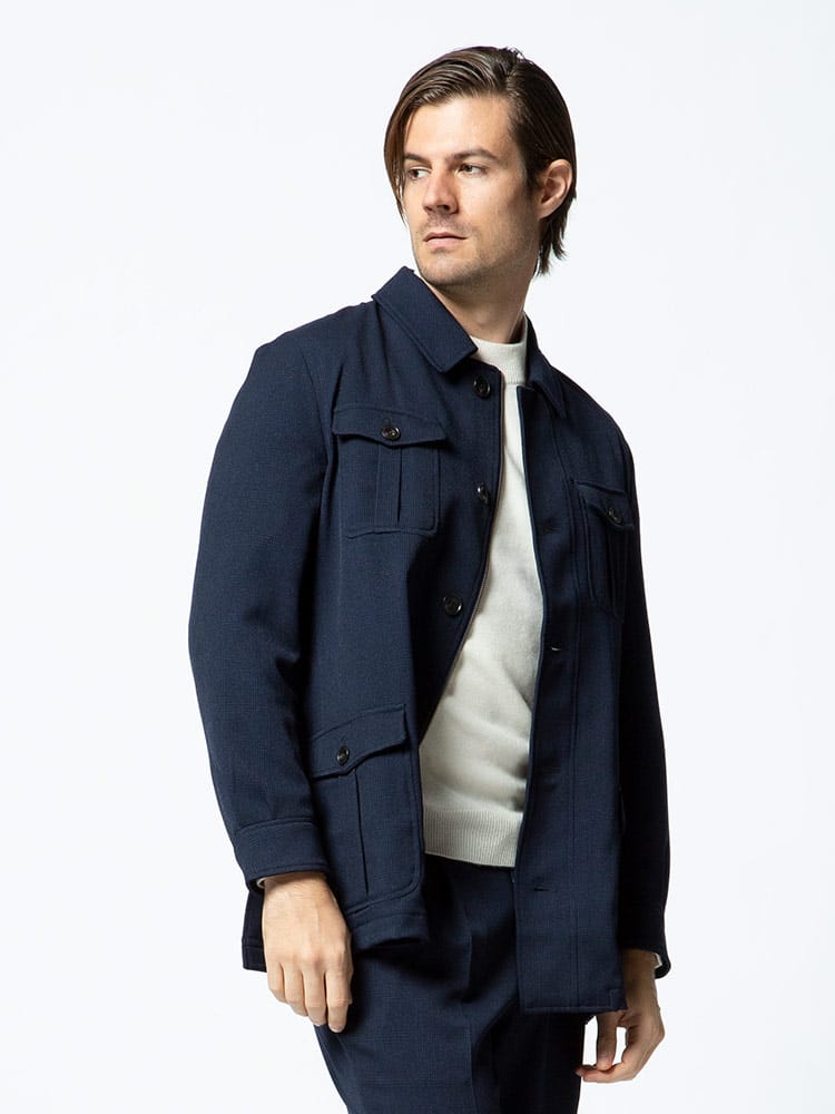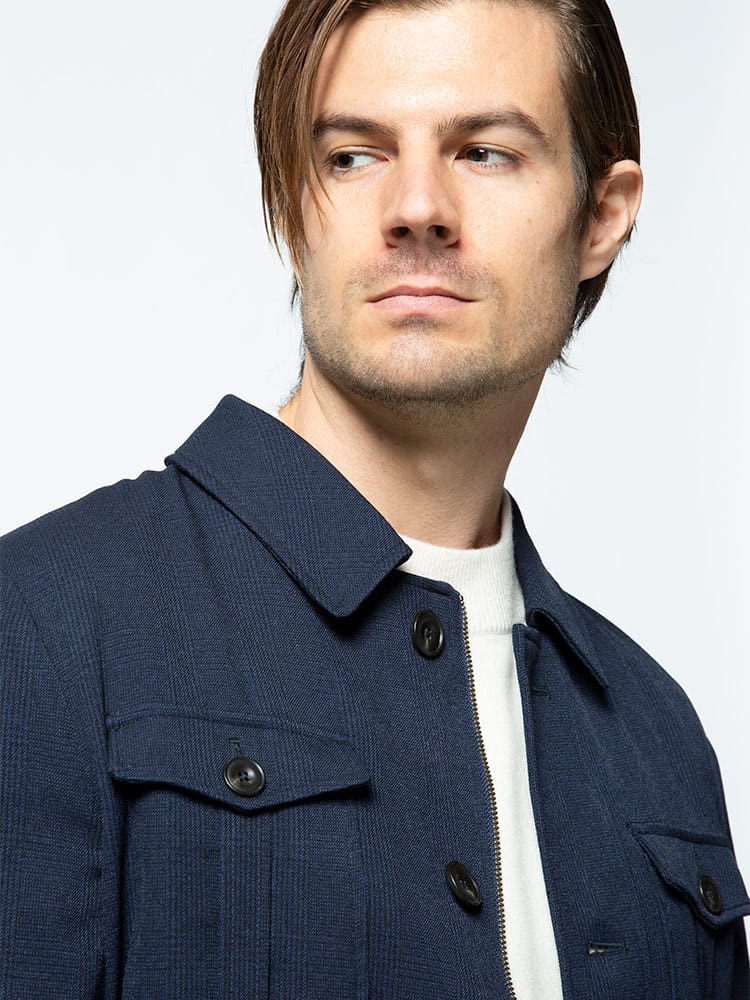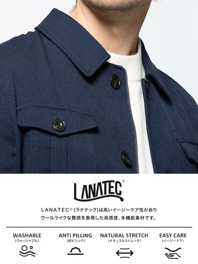 ナチュラルストレッチで快適な着心地のチェック ポケット シャツジャケットです。フロントのポケットデザインがポイント。素材に高いイージーケア性があり、ウールライクな質感を表現した高感度、多機能素材のLANATEC(ラナテック)を使用しています。ウォッシャブルでご家庭でお手軽にお手入れ出来るのも魅力です。サッと羽織れるシャツジャケットで汎用性に優れています。