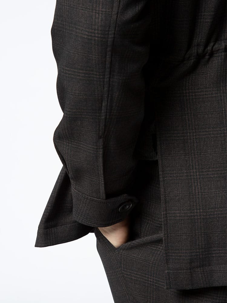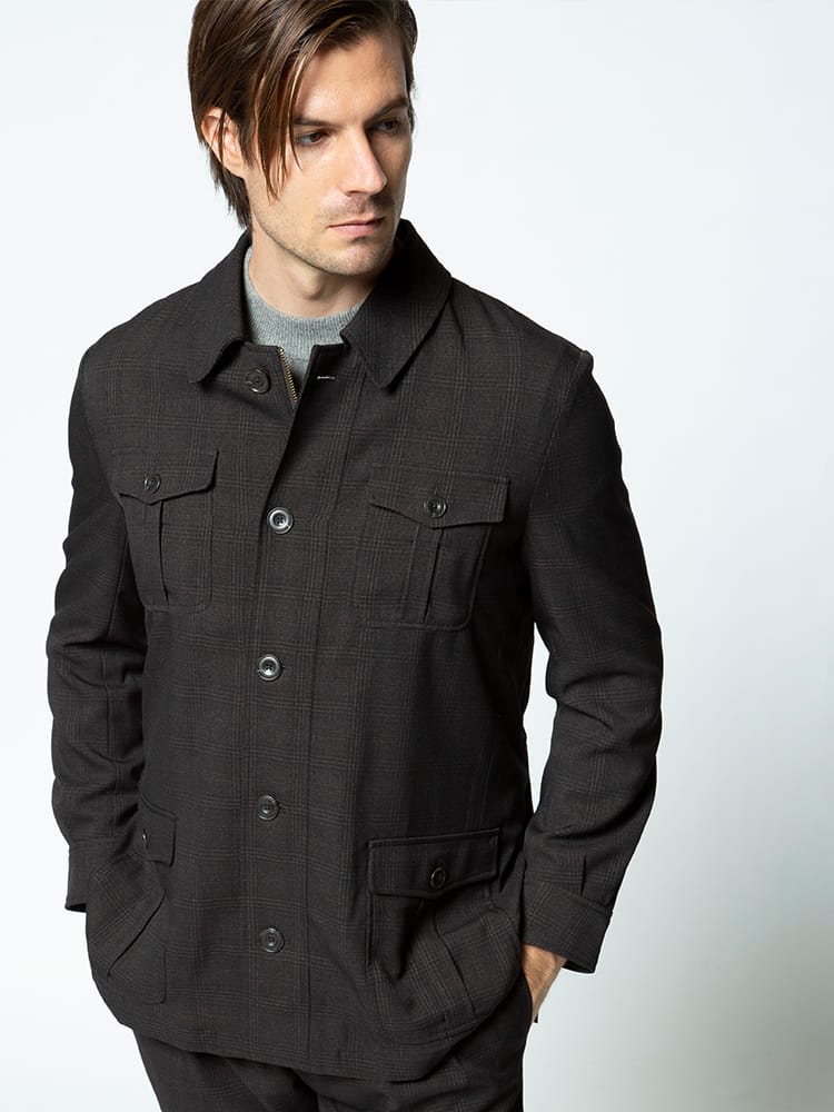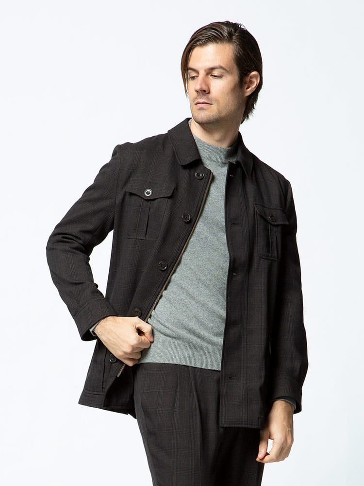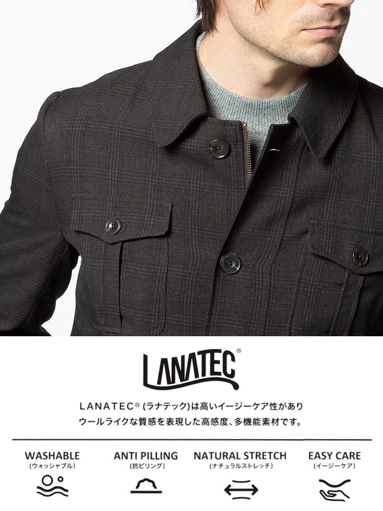 ナチュラルストレッチで快適な着心地のチェック ポケット シャツジャケットです。フロントのポケットデザインがポイント。素材に高いイージーケア性があり、ウールライクな質感を表現した高感度、多機能素材のLANATEC(ラナテック)を使用しています。ウォッシャブルでご家庭でお手軽にお手入れ出来るのも魅力です。サッと羽織れるシャツジャケットで汎用性に優れています。
