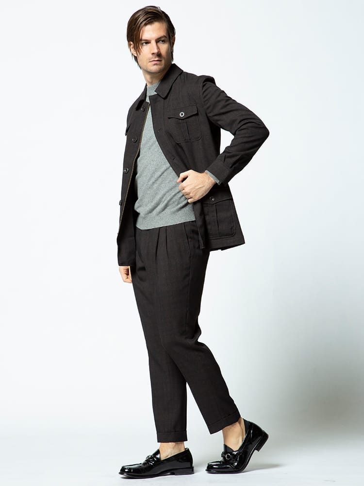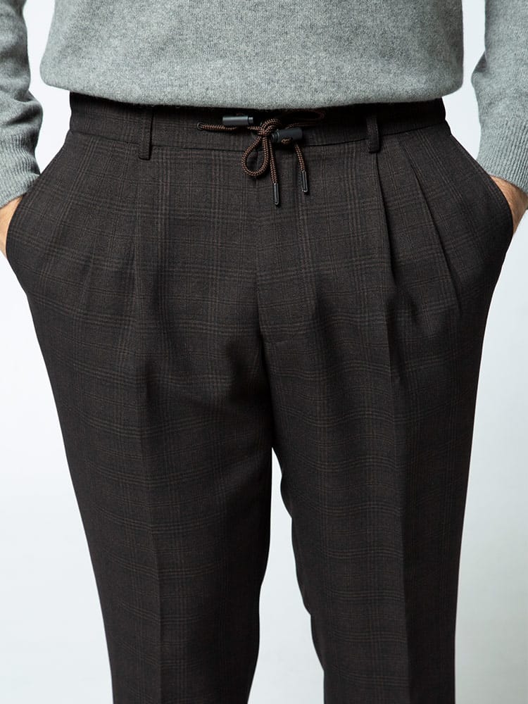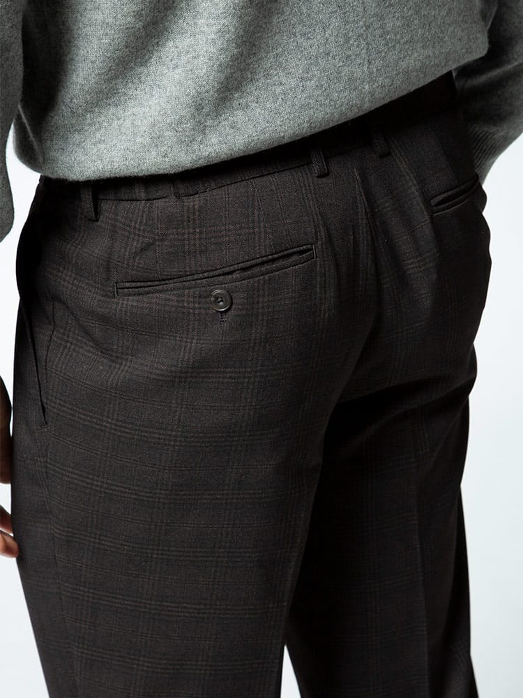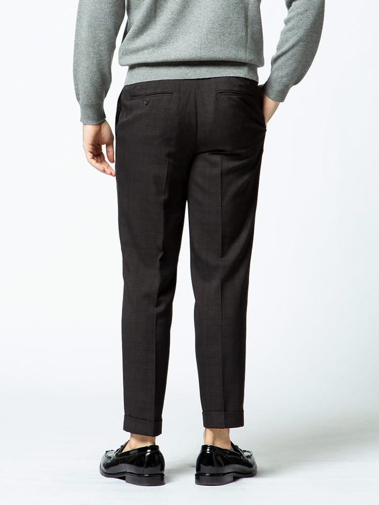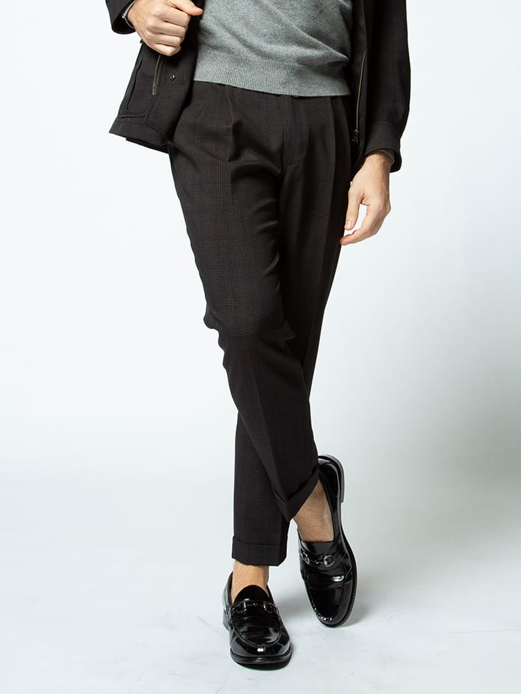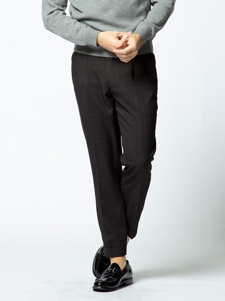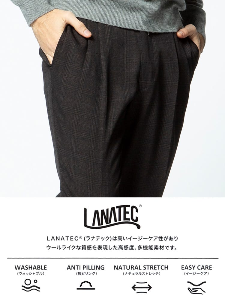 ナチュラルストレッチで快適な着心地のチェック ツータック スラックスです。ツータックでゆとりのあるデザイン。素材に高いイージーケア性があり、ウールライクな質感を表現した高感度、多機能素材のLANATEC(ラナテック)を使用しています。ウォッシャブルでご家庭でお手軽にお手入れ出来るのも魅力です。