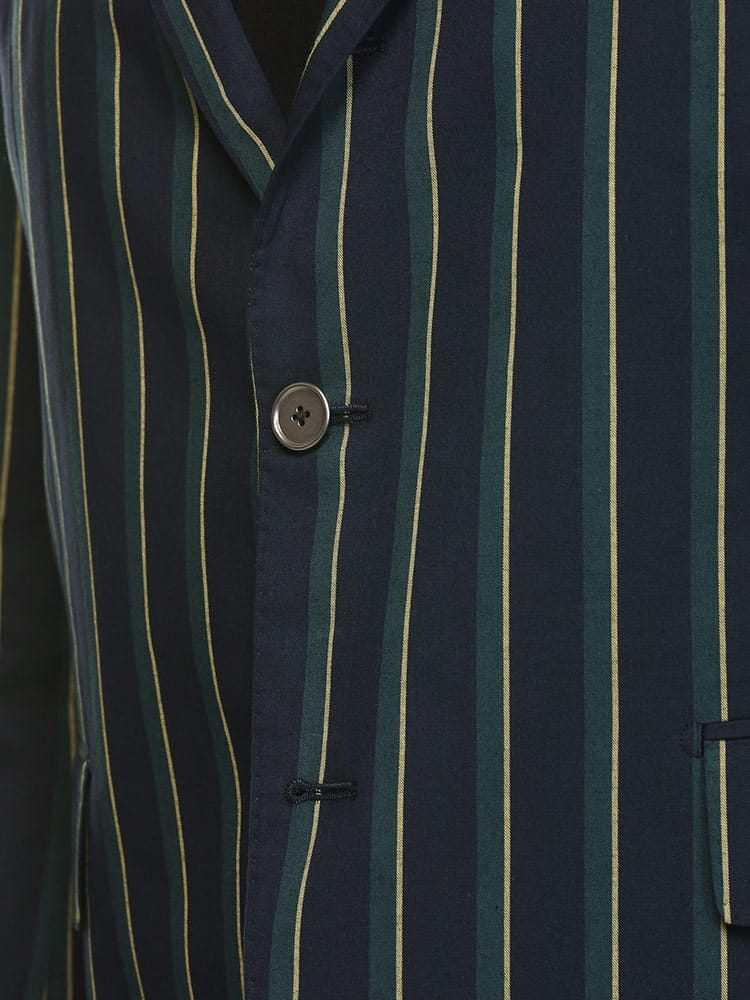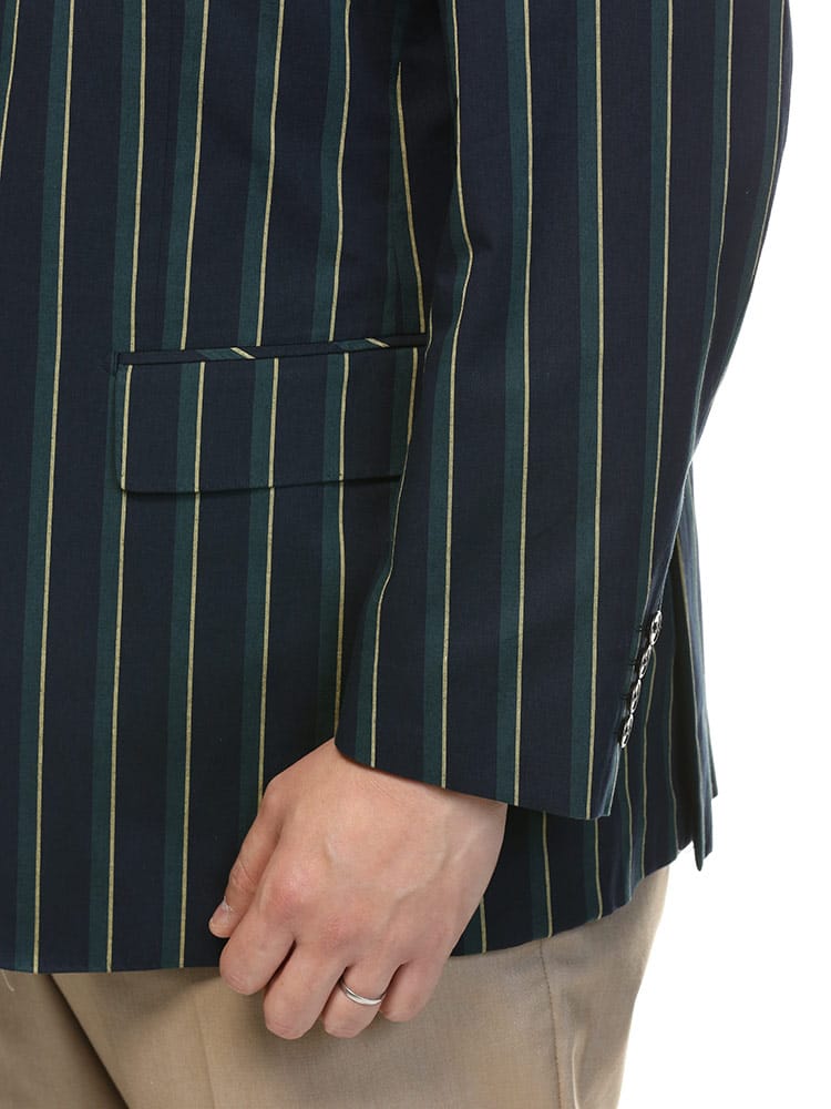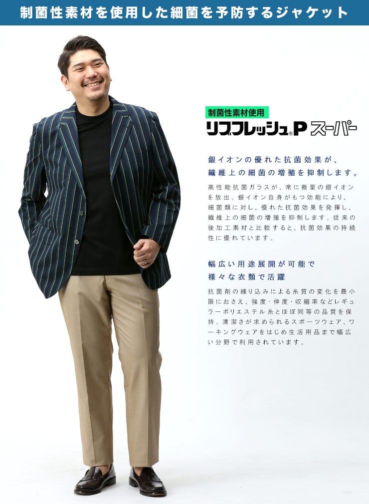 アイビーストライプが目を引くコットン 段返り3つ釦 ジャケットです。制菌性素材(銀イオン効果)リフレッシュPスーパーを使用し、清潔に着ていただけます。動きやすいサイドベンツ仕様。アイビーストライプの洗練されたデザインで幅広いパンツと相性抜群でスラックスと合わせたジャケパンスタイルにもおすすめです。
