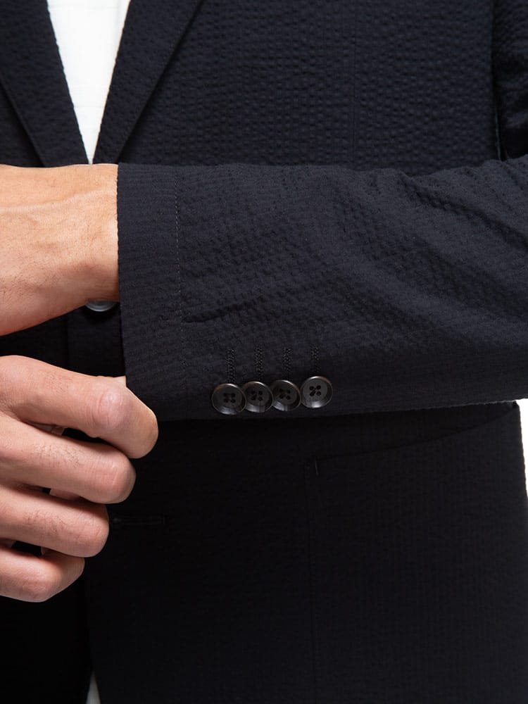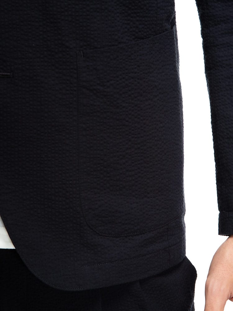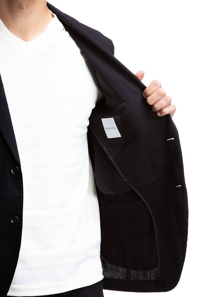 清涼感のあるシアサッカー生地で仕上げたシングル 2ツ釦 ジャケットです。制菌性素材(銀イオン効果)リフレッシュPスーパーを使用し、清潔に着ていただけます。軽量でサッと軽く羽織っていただけます。暖かくなる春夏のアウターにおすすめの一着です。