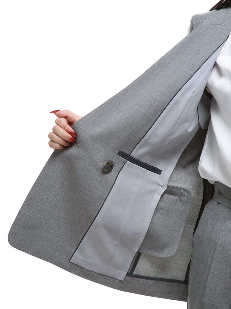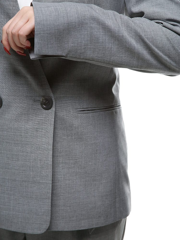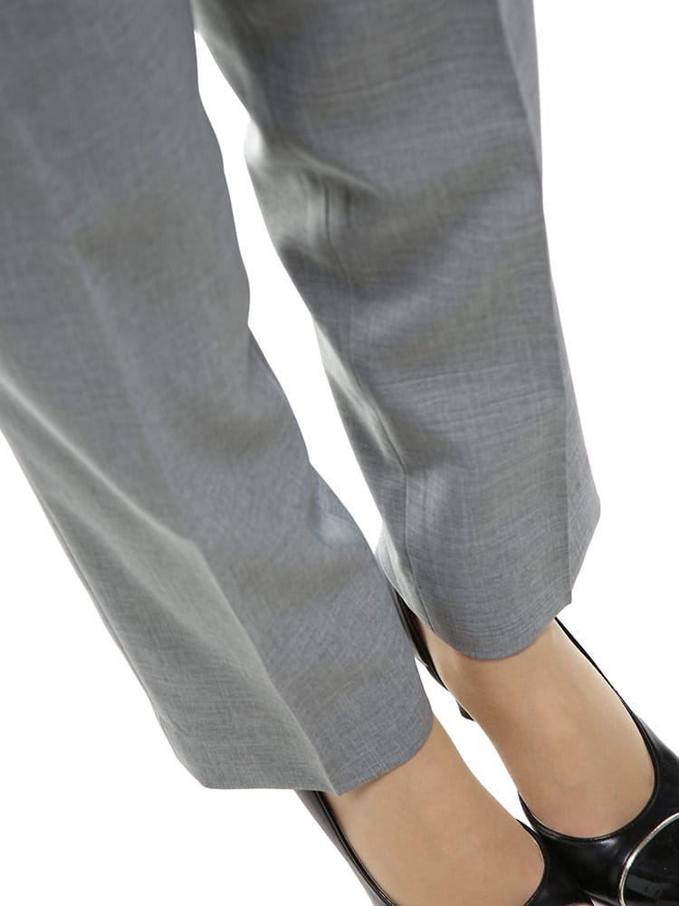 すっきりとしたノーカラーデザインのダブル ジャケットとロングパンツのスーツです。ウォッシャブル機能付きでお手入れもラクチン♪パンツにはベルト付きなのも◎。無地デザインで幅広いシーンに着ていただけます。
