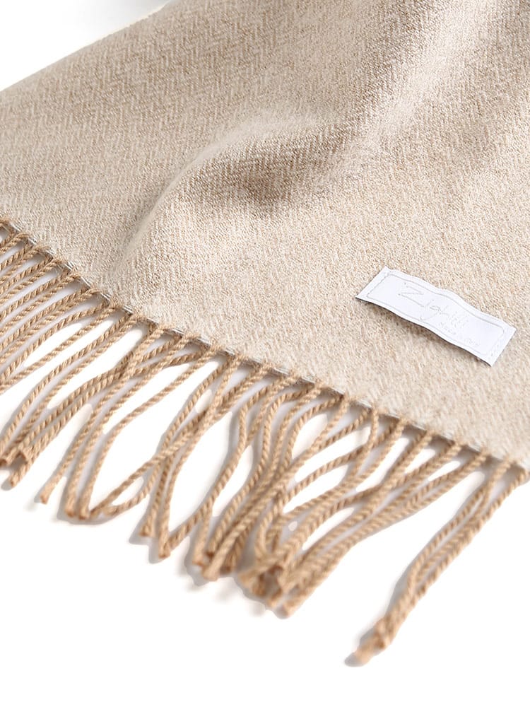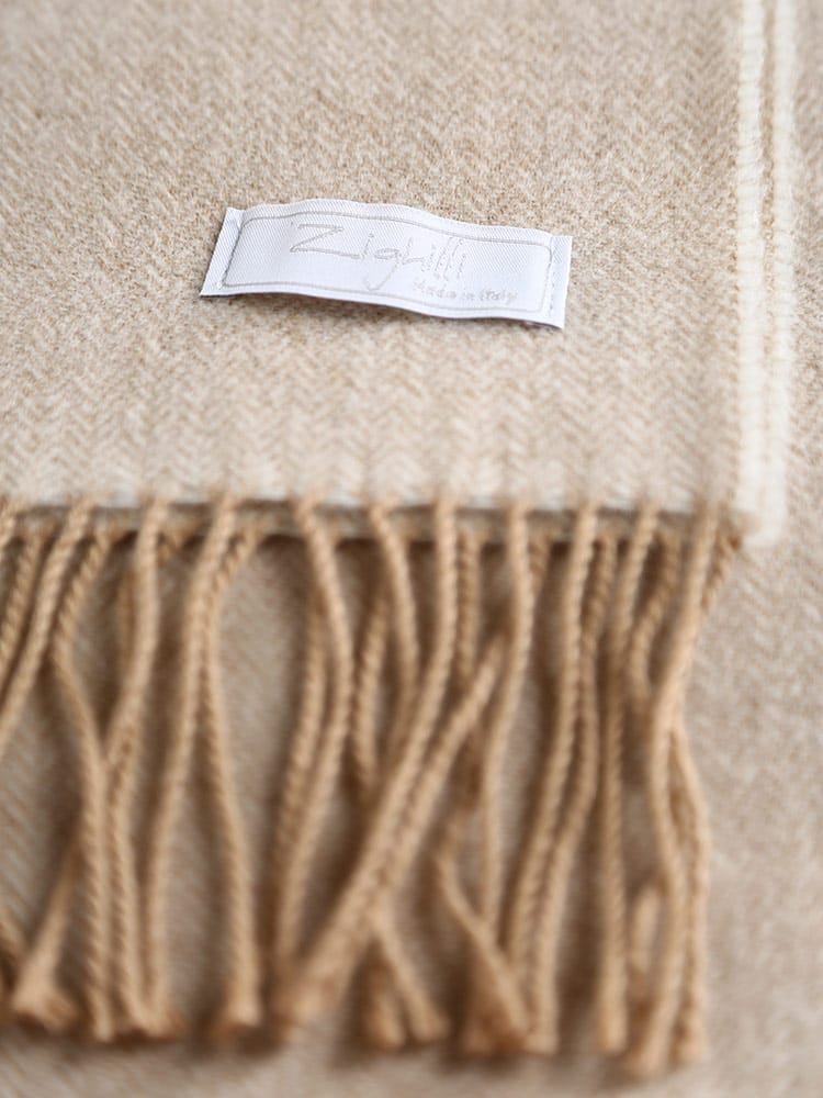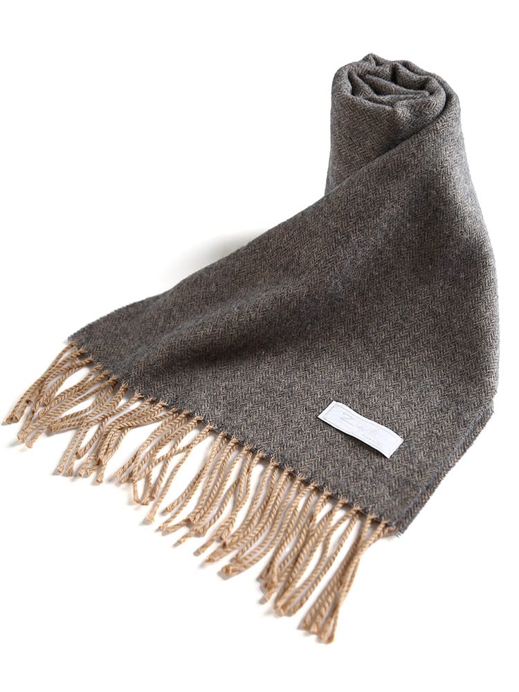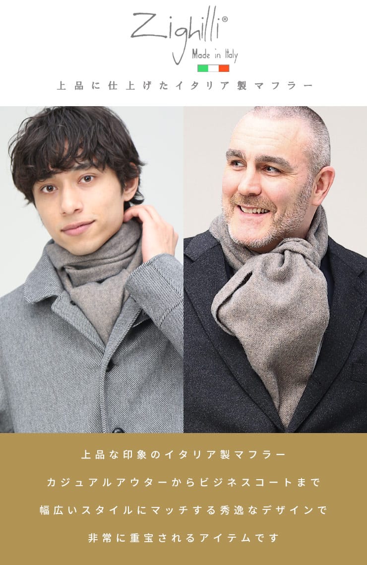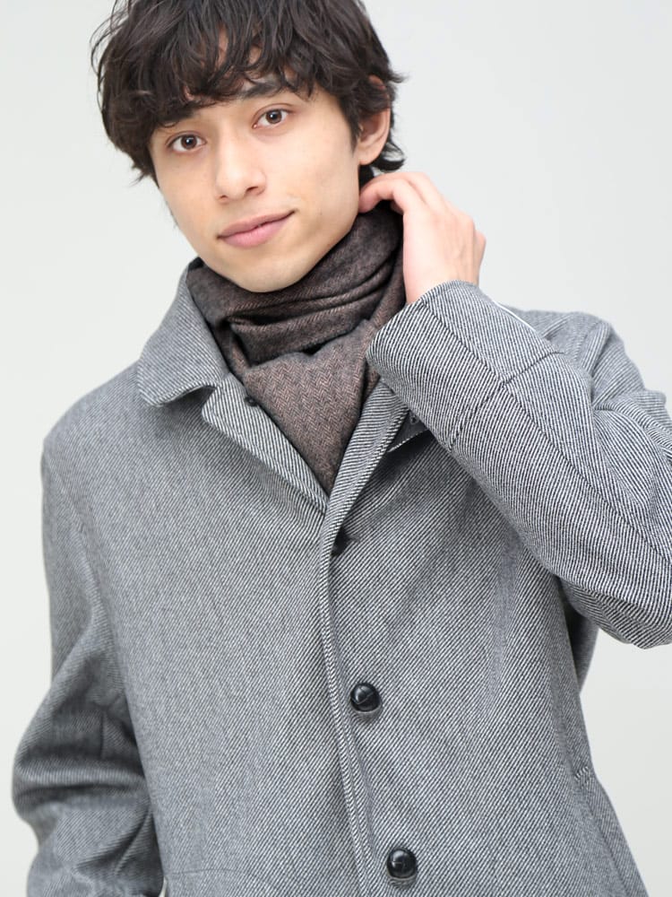MADE IN ITALYの上質感溢れるマフラーです。落ち着いたヘリンボン柄と細めのフリンジが、ビジネススタイルにマッチするデザイン。温かな着用感ながらも厚手になりすぎないスマートなボディなので、スーツスタイルからキレイめなジャケットスタイルなど幅広く使えるマフラーとなっています。