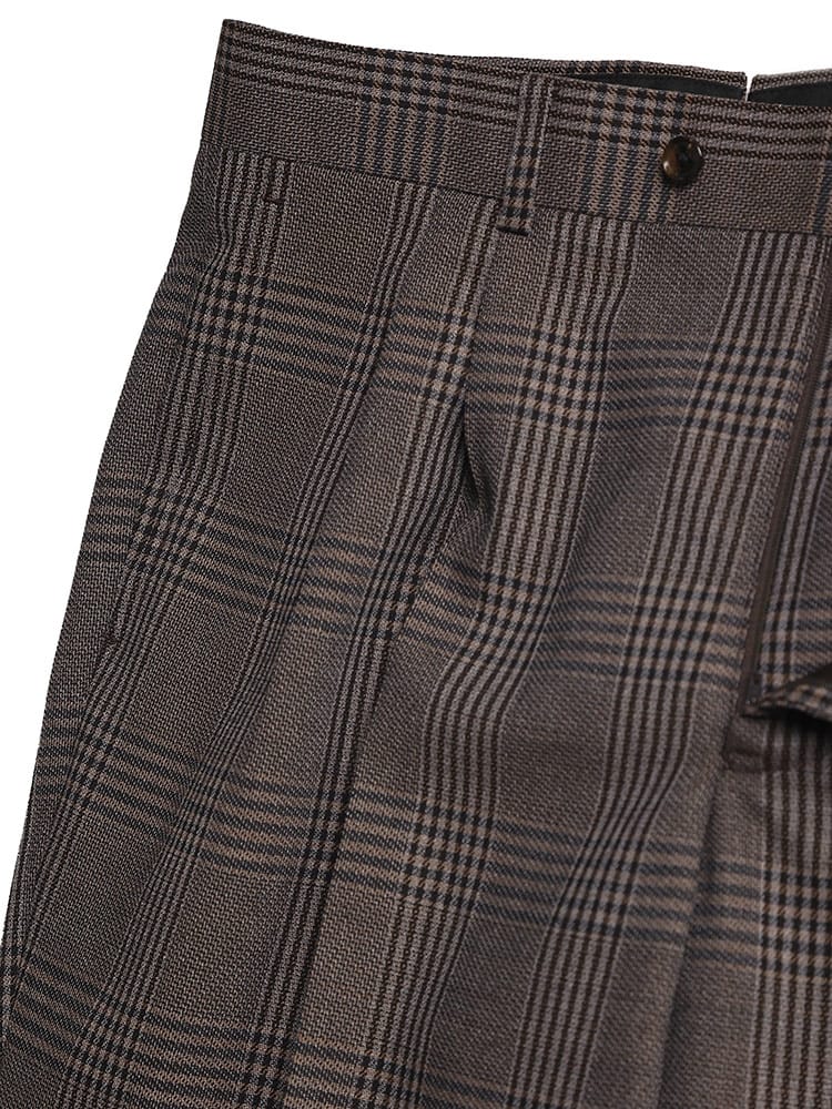 マルゾットのチェック柄シングルツータックスーツは、高品質な素材と洗練されたデザインが特徴です。チェック柄は華やかさと個性を演出し、シングルジャケットのスタイリッシュな印象とツータックパンツの快適さが特徴です。段返り3ツ釦はクラシックな雰囲気を与え、ビジネスや特別なシーンでの上品なスタイルを提供します。