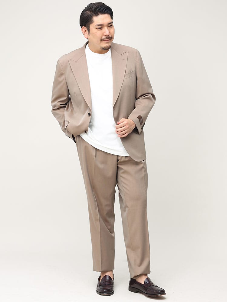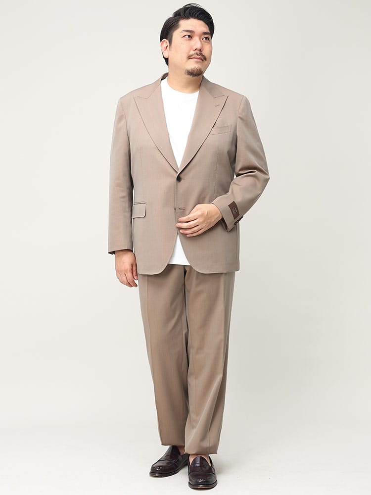 仕様 :ジャケット外側ポケット×3つ / 内側ポケット数×2つ / シングル2つボタン / 半裏 / セッパタイプ / 額縁なし / サイドベンツ / スラックス外側ポケット×4つ / ワンタック / ウエストサイドゴム