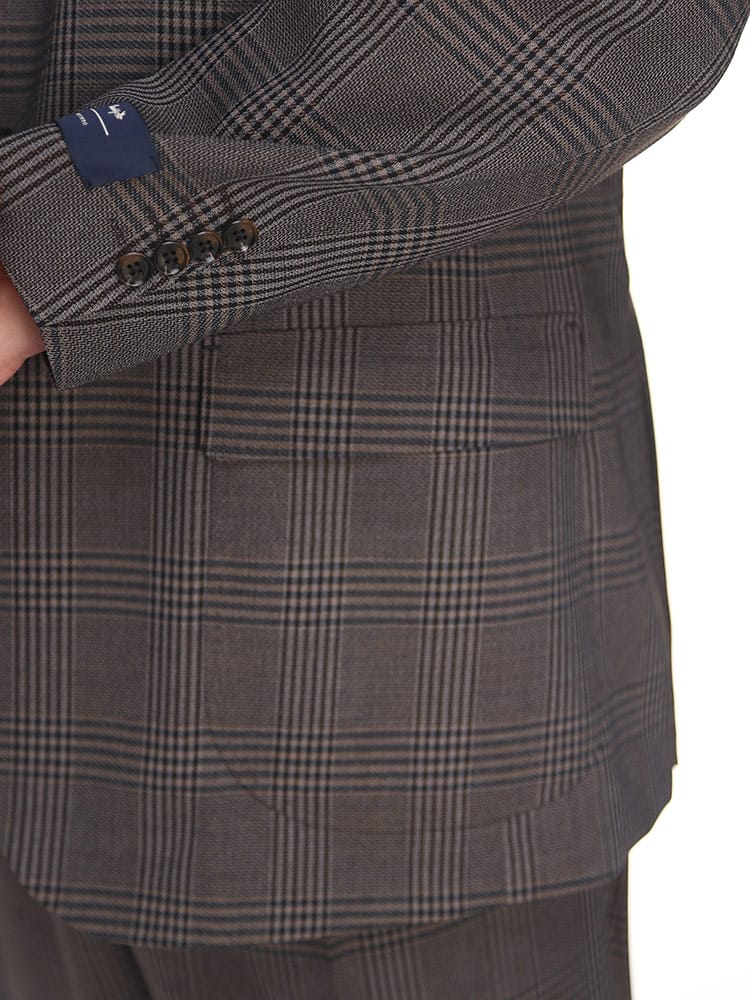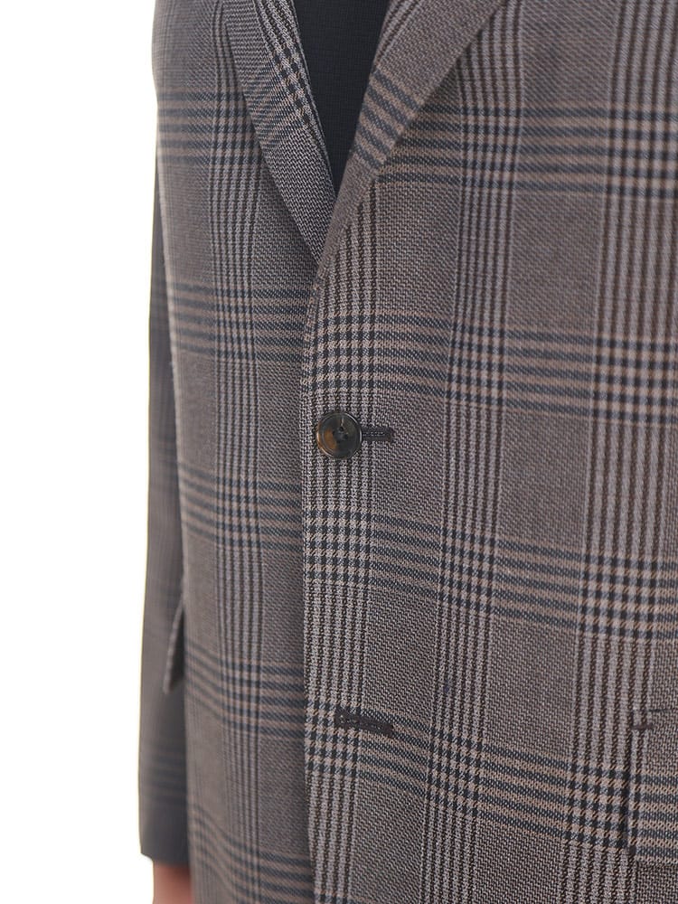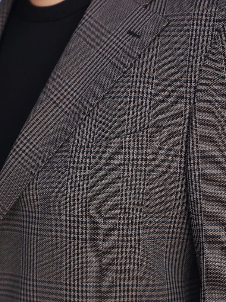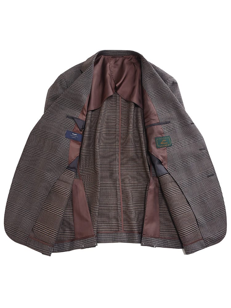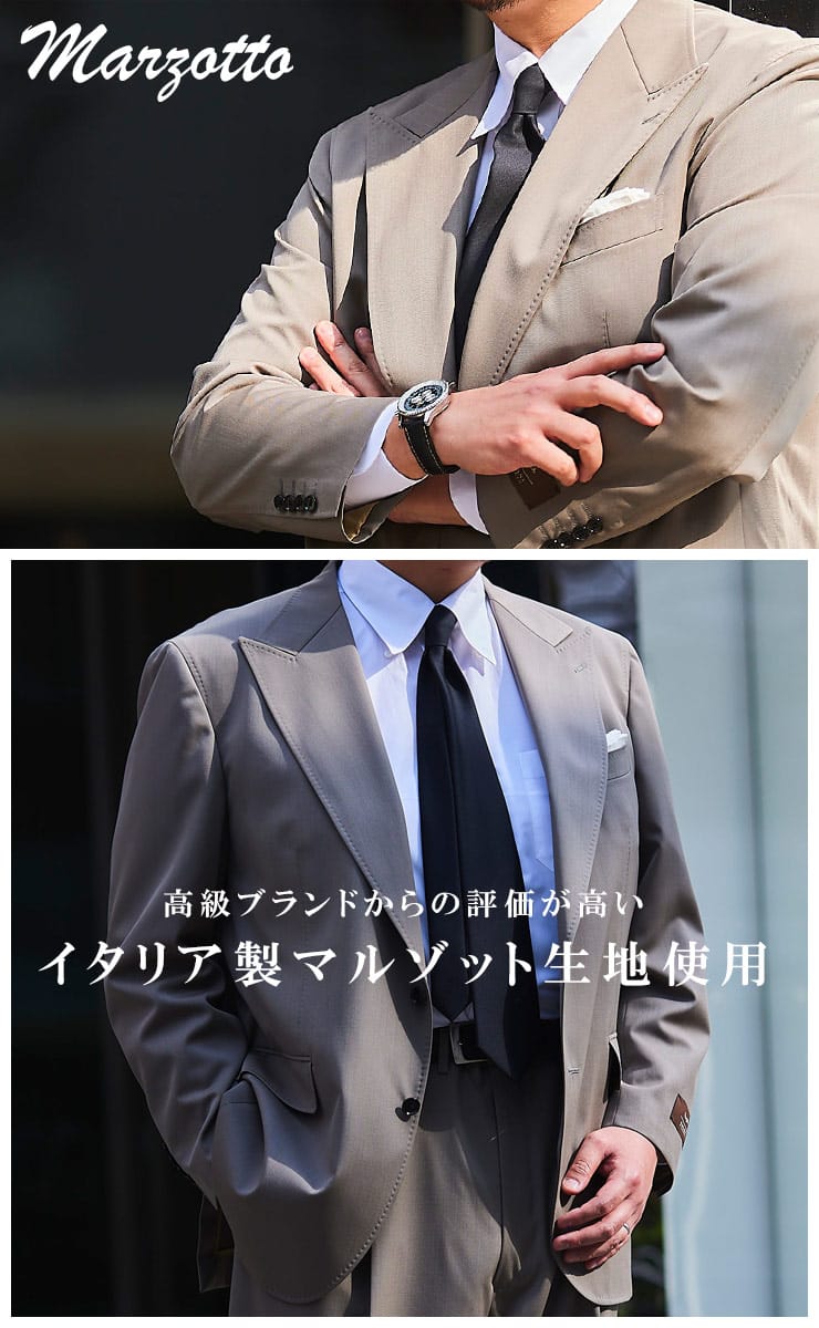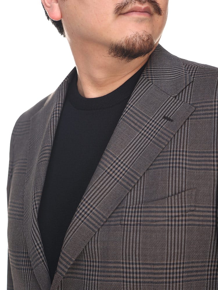 クラシカルなシルエットのフレスコチェック シングル 段返り3ツ釦 スーツです。上品な雰囲気のフレスコチェックがが、ビジネスシーンだけでなくプライベートシーンにも対応してくれるオシャレなデザイン。イタリアのMarzotto(マルゾット)の生地を使用した上品な質感のスーツ。