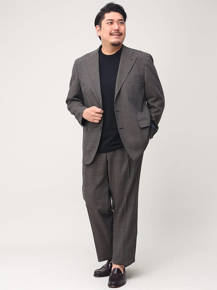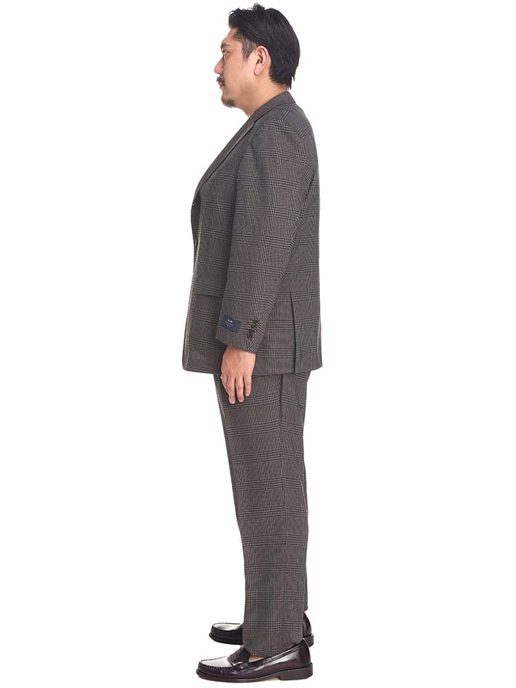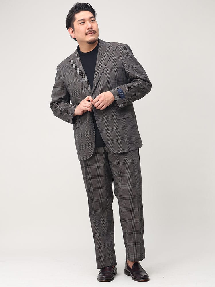 仕様 :ジャケット外側ポケット×3つ / 内側ポケット数×2つ / シングル段返り3つボタン / 半裏 / セッパタイプ / 額縁なし / サイドベンツ / スラックス外側ポケット×4つ / ワンタック / ウエストサイドゴム