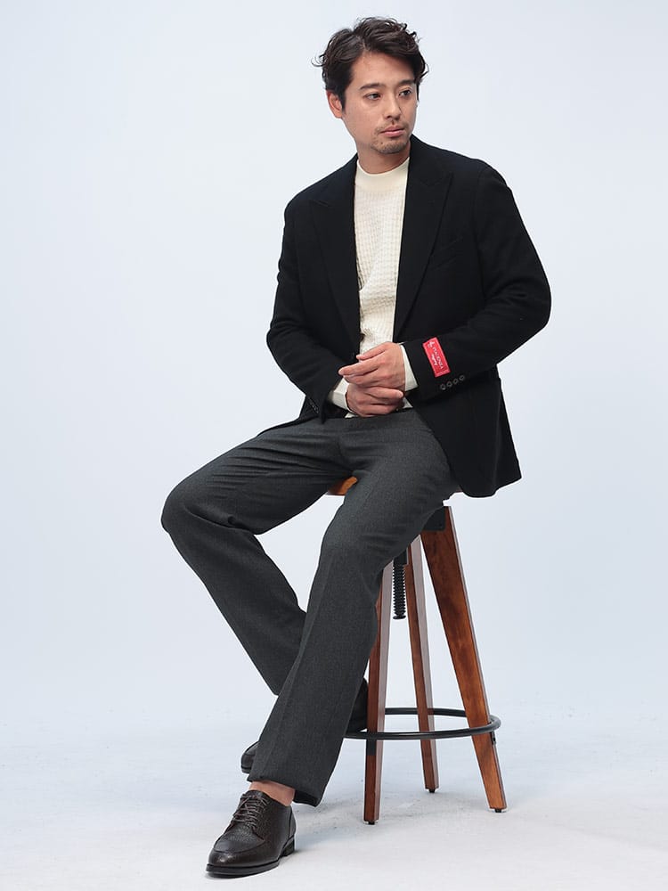 仕様 :外側ポケット数×3つ / 内側ポケット数×2つ / シングル2つボタン / 半裏 / サイドベンツ / セッパタイプ / 額縁なし