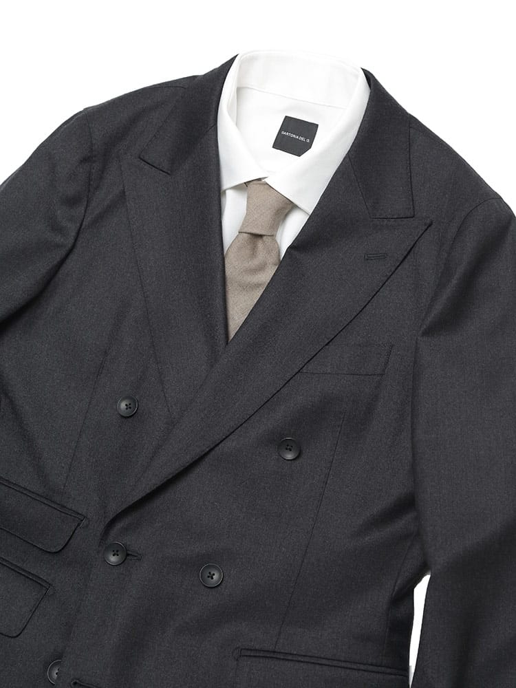 SARTORIA DEL GROSSO FABRIC BY ITALYのウールダブルスーツは、イタリア製の高級ウール生地がもたらす上質な肌触りと光沢が魅力です。ダブル6ボタンのクラシカルなデザインが特徴的で、3つのポケットやツータックなど、伝統的なテーラリングの要素が随所に散りばめられています。イタリア製高級ウール100%ならではの温かみと通気性があり、秋冬シーズンに最適。背抜き仕立てで、日本の気候にも合わせやすい設計です。セッパタイプやサイドベンツなど、細やかなディテールにもこだわりが感じられ、重厚感のある大人の男性を演出します。ビジネスシーンはもちろん、フォーマルな場にも対応できる汎用性の高い一着です。