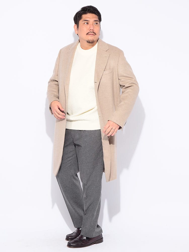 イタリアの高級服地メーカーPIACENZA社のカシミヤを100%使用した、贅沢なシングルチェスターコート。極上の柔らかさと温もり、滑らかな肌触りが、大人の男性にふさわしい品格と着心地を約束します。ビジネスからフォーマルなシーンまで、洗練されたデザインが装いを格上げし、秋冬の至極のアウターとして活躍します。