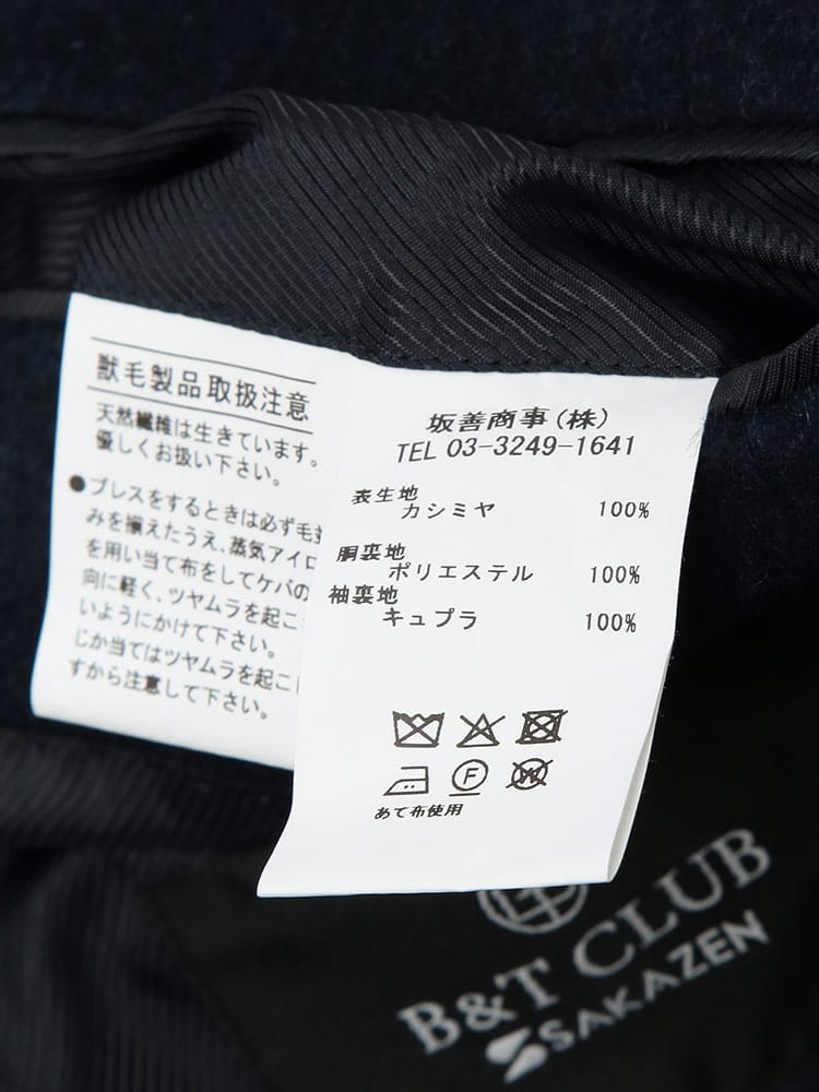 素材 :[表地]カシミヤ100% [胴裏地]ポリエステル100% [袖裏地]キュプラ100%