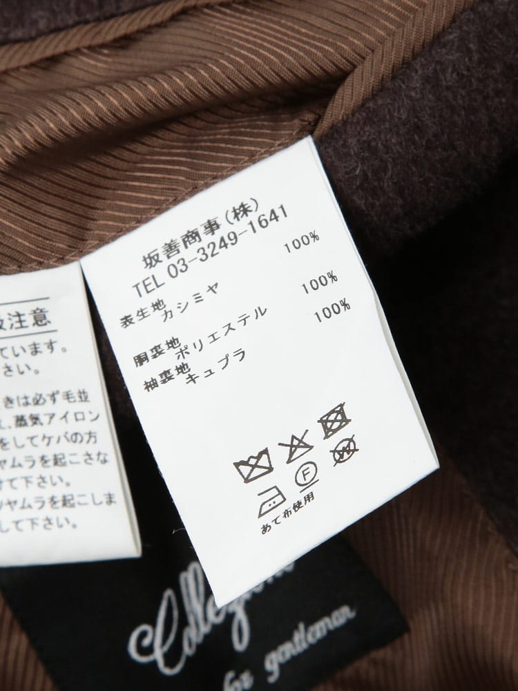 素材 :[表地]カシミヤ100% [胴裏地]ポリエステル100% [袖裏地]キュプラ100%