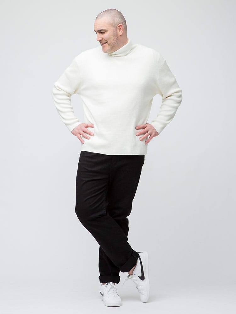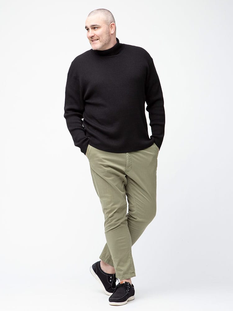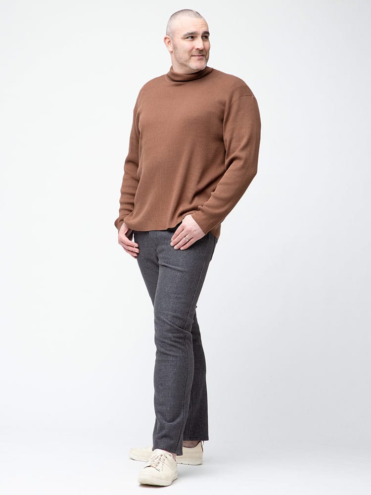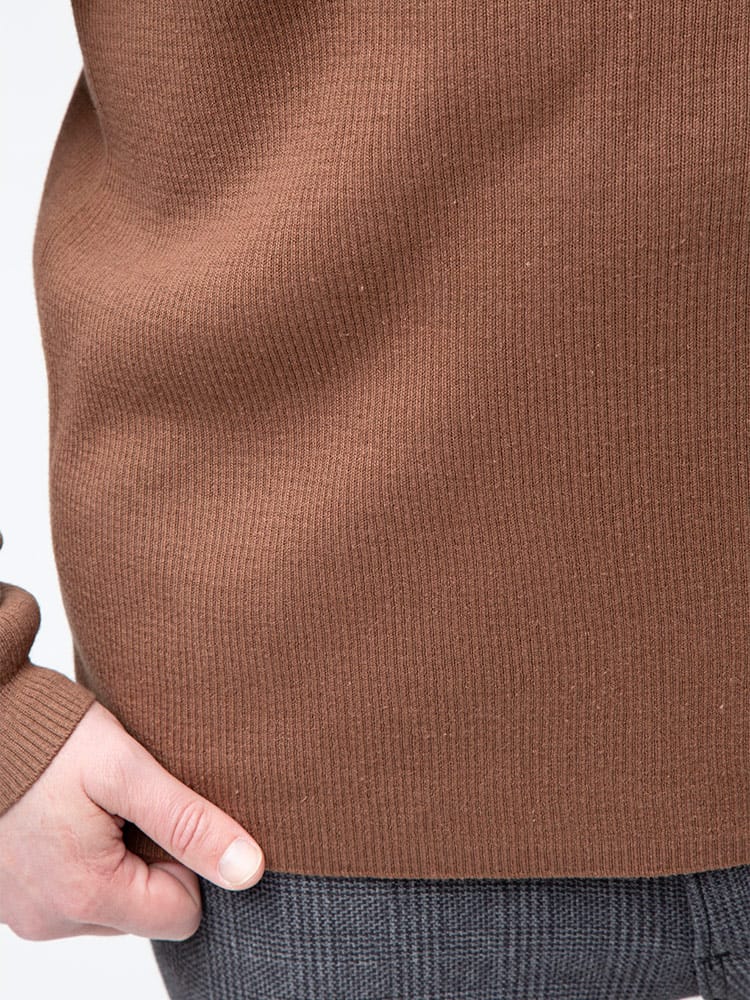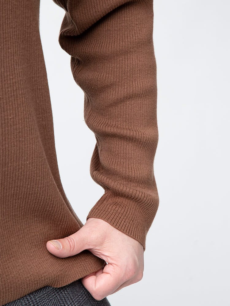 綿混のリブ編みで仕上げた無地 タートルネック セーターです。ベーシックな無地デザインでどんなスタイルにも合わせていただけます。首元も暖かなタートルネックデザイン。シンプルなデザインで大人のカジュアルスタイルに最適なアイテムです。
