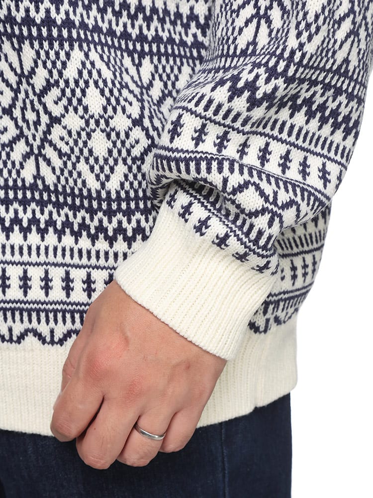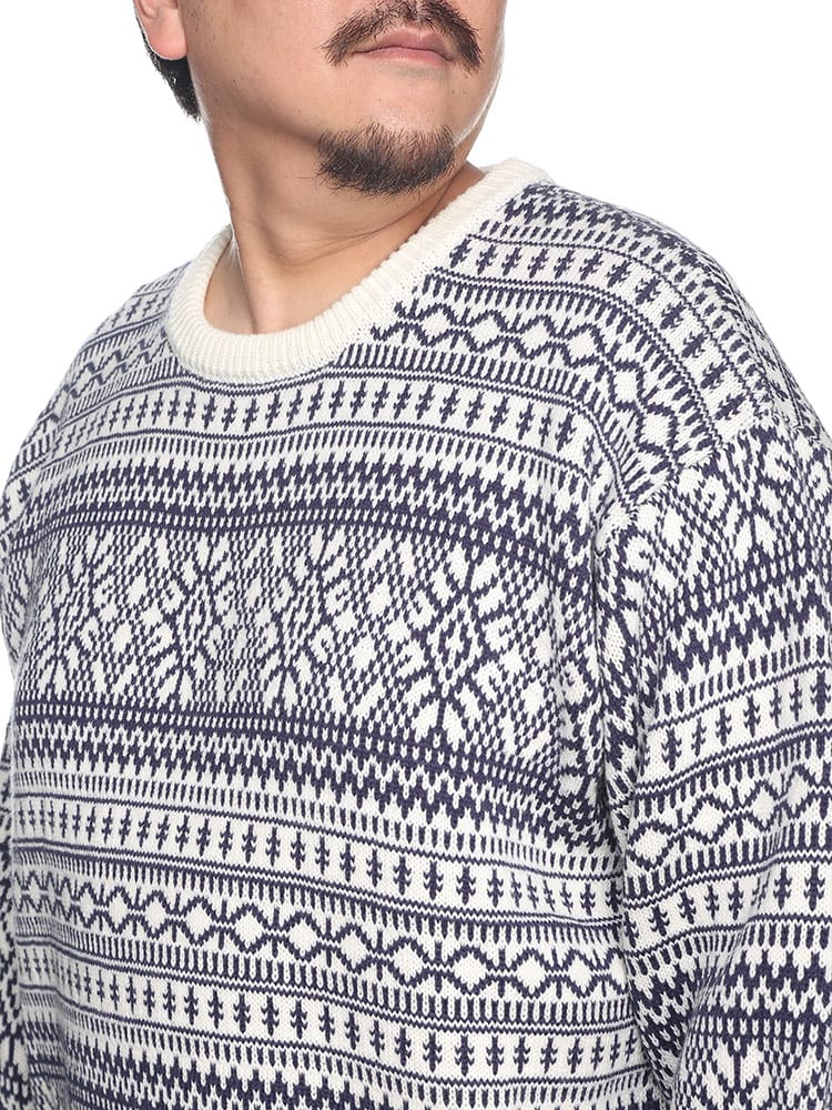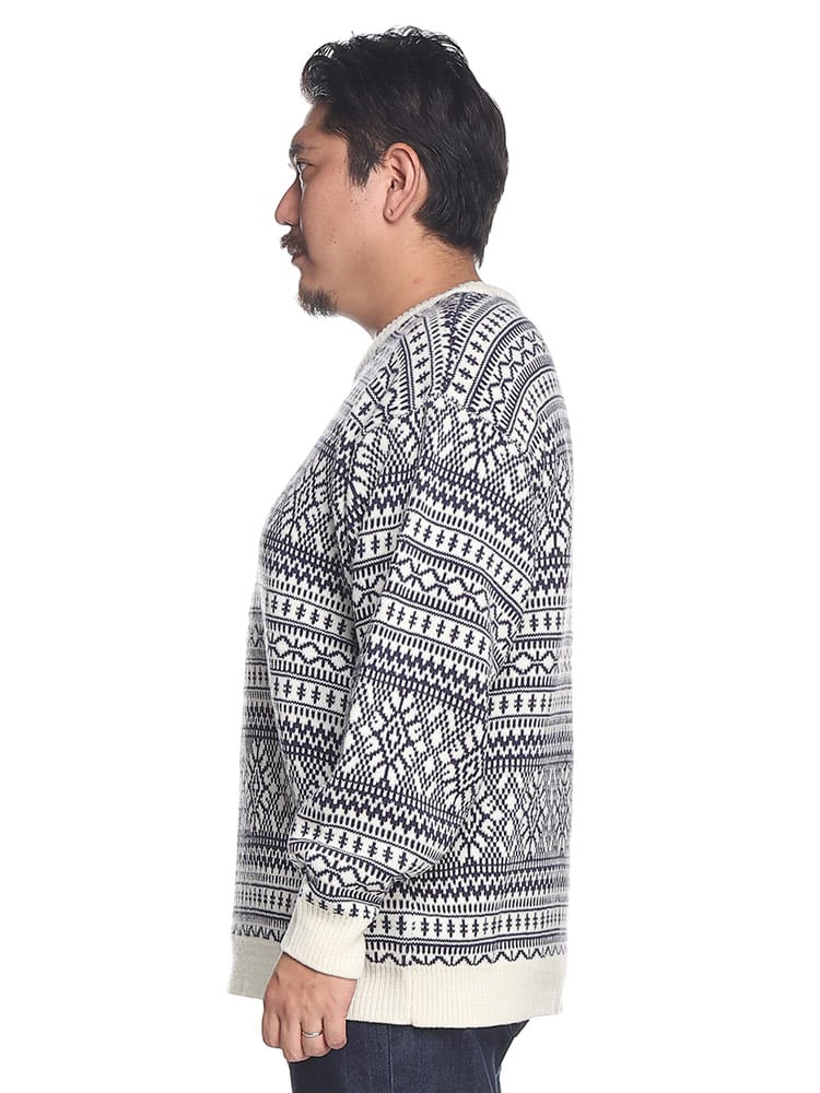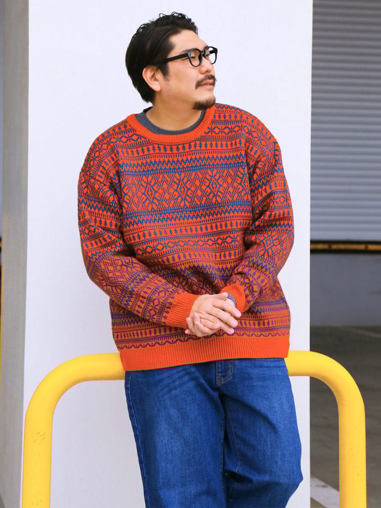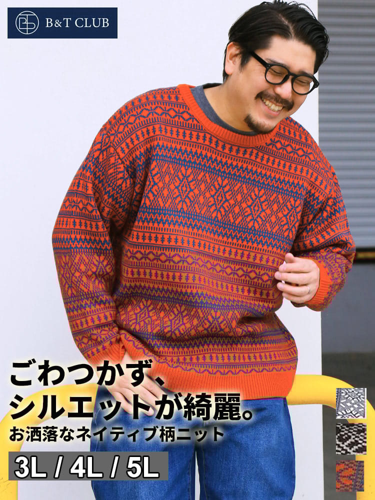 ネイティブ柄のデザインは、エスニックな要素とモダンな雰囲気が融合したユニークなデザインで、ファッションのアクセントとして一目置かれること間違いありません。長袖のプルオーバースタイルで、カットソー、シャツとインナーによってさまざまなスタイリングに合わせやすいアイテムです。カジュアルなコーディネートにはもちろん、シャツをインナーで合わせればスタイリッシュなシーンでも活躍すること間違いなしです。トレンドに敏感な大人の男性にぴったりのB&T CLUB 7Gネイティブ柄クルーネックセーターは、ファッション性と快適さを両立させた理想的なニットウェアです。