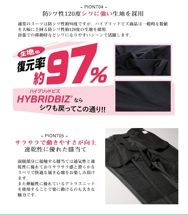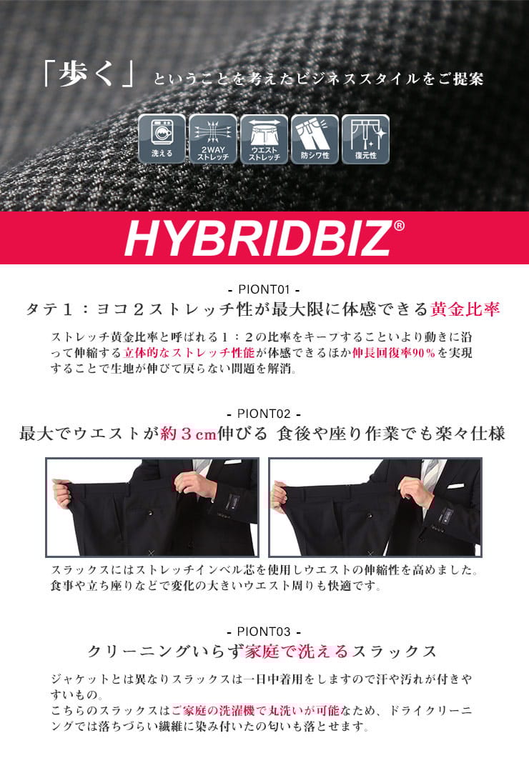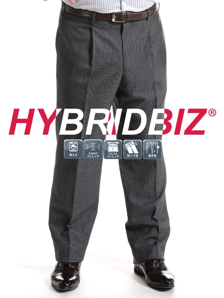 すっきりとしたシルエットが魅力的なHYBRIDBIZ「ハイブリッドビズ」のワンタックスラックスが登場。ご自宅でお手軽にお手入れが出来るウォッシャブル機能付きです。上品でスタイリッシュな千鳥柄デザインで、お手持ちのジャケットと合わせて洗練されたジャケパンスタイルをお楽しみいただけます。
