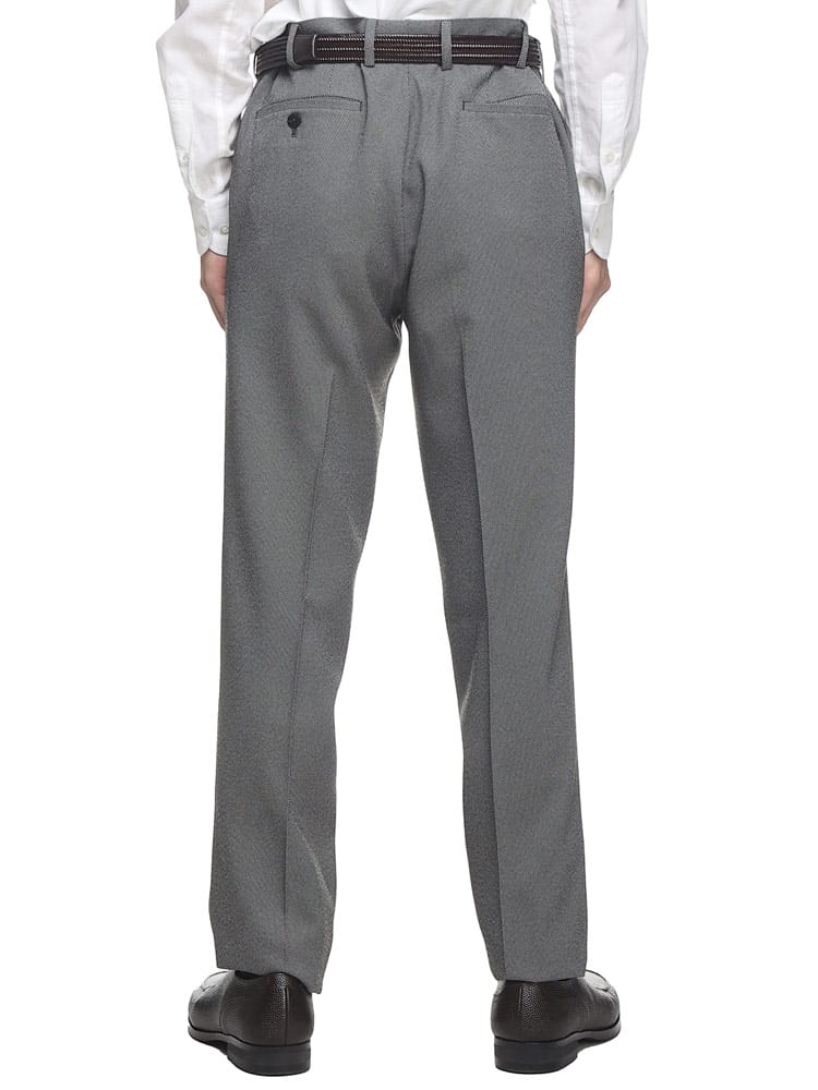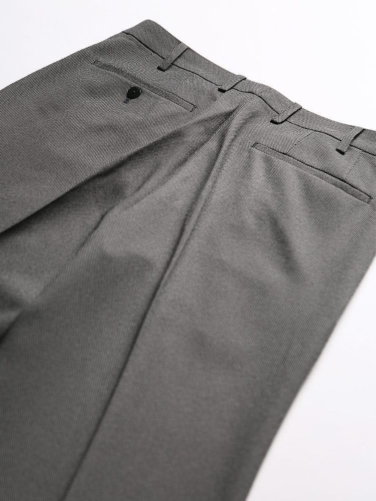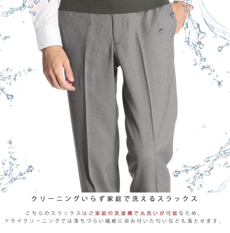 すっきりとしたシルエットが魅力的なHYBRIDBIZ「ハイブリッドビズ」のノータックスラックスのご紹介です。バーズアイ柄が品のあるアイテム。生地の構造はSupercrease仕様。現代の忙しい生活様式に向けて企画されたSupercreaseは、独特なパーマネント加工のヒダを生地に与えます。洋服の耐久性に合わせて形作るヒダは、安定感がある自然な最初のプレス状態を保ちます。洗濯やドライクリーニングまた日常的な擦り切れに耐える構造です。ご家庭でお手軽にお手入れが出来るウォッシャブル機能付き。使いやすいシンプルデザインで、お手持ちのジャケットと合わせてジャケパンスタイルもお楽しみいただけます。