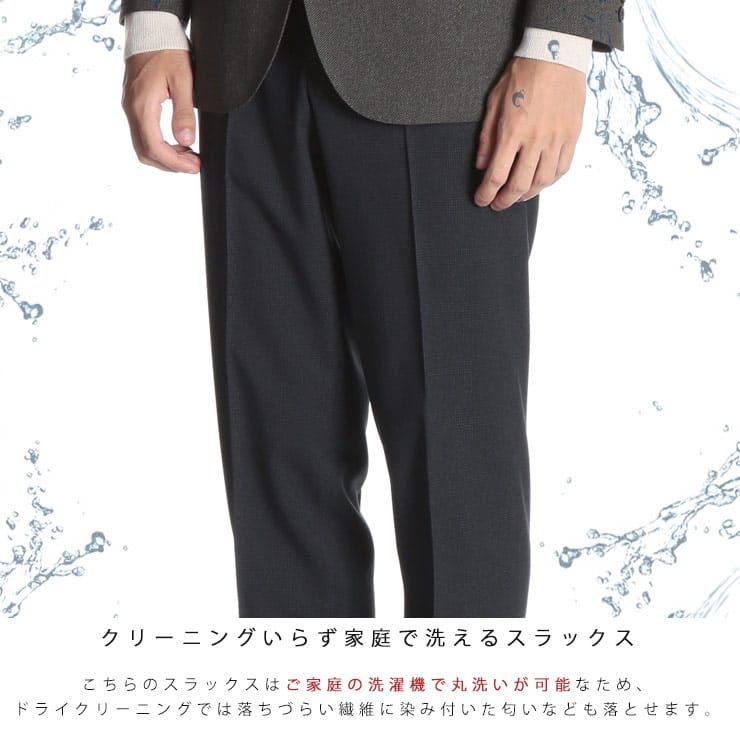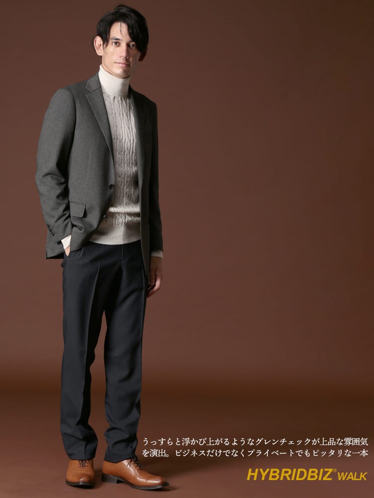すっきりとしたシルエットが魅力的なHYBRIDBIZ「ハイブリッドビズ」のノータックスラックスのご紹介です。グレンチェック柄が上品なアイテム。生地の構造はSupercrease仕様。現代の忙しい生活様式に向けて企画されたSupercreaseは、独特なパーマネント加工のヒダを生地に与えます。洋服の耐久性に合わせて形作るヒダは、安定感がある自然な最初のプレス状態を保ちます。洗濯やドライクリーニングまた日常的な擦り切れに耐える構造です。ご家庭でお手軽にお手入れが出来るウォッシャブル機能付き。使いやすいシンプルデザインで、お手持ちのジャケットと合わせてジャケパンスタイルもお楽しみいただけます。