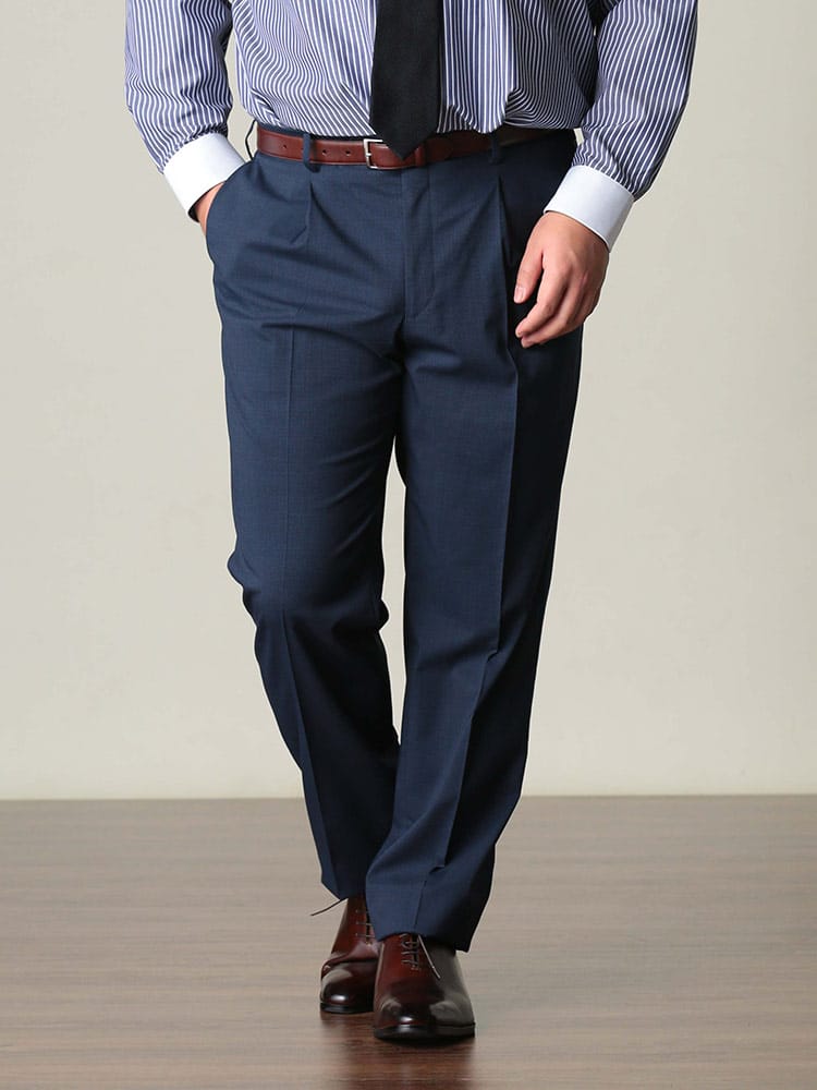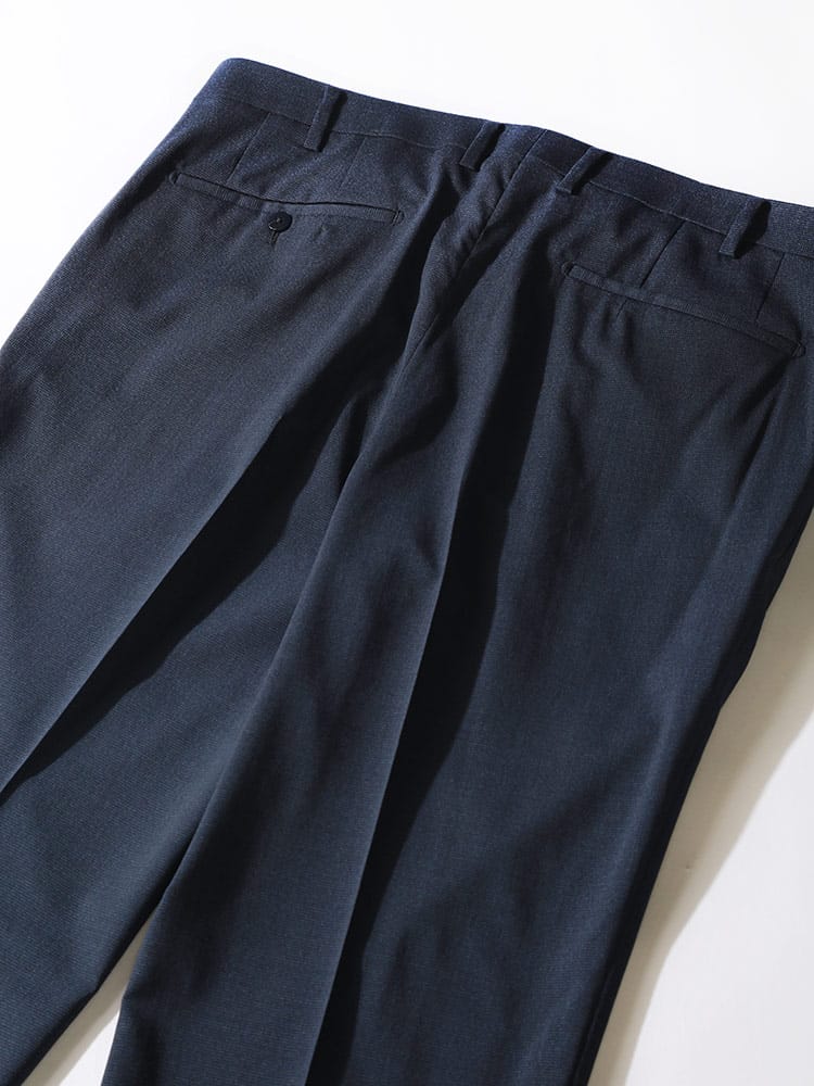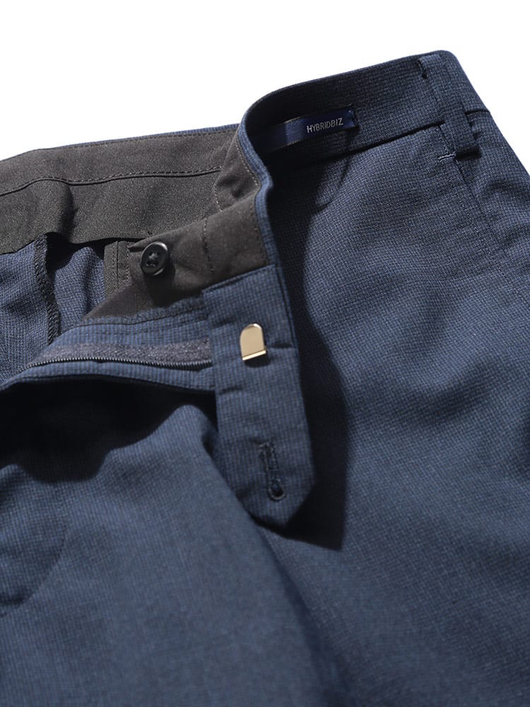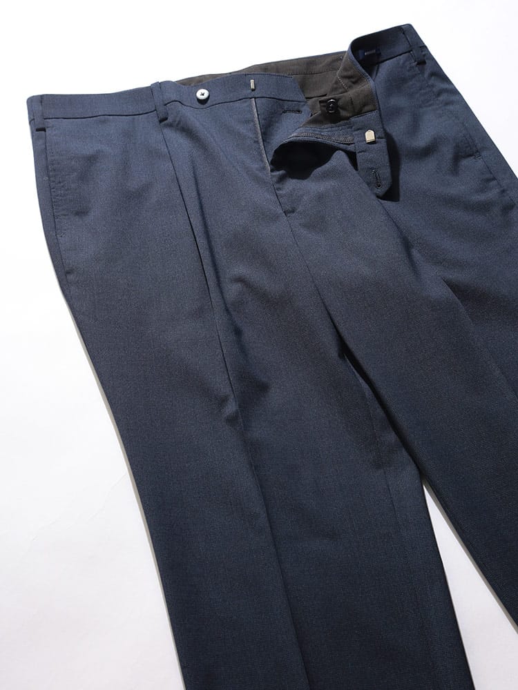 すっきりとしたシルエットが魅力的なHYBRIDBIZ「ハイブリッドビズ」のワンタックスラックスです。洗練された印象で品がありスタイリッシュに穿いていただけるアイテム。ウール混の上品な素材を使用。落ち着いた千鳥柄でお手持ちのジャケットと合わせてジャケパンスタイルもお楽しみいただけます。