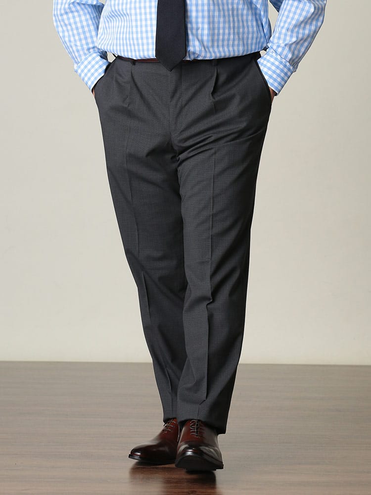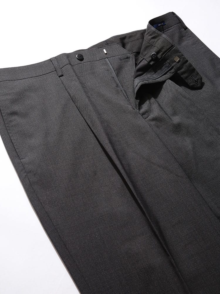 すっきりとしたシルエットが魅力的なHYBRIDBIZ「ハイブリッドビズ」のワンタックスラックスです。洗練された印象で品がありスタイリッシュに穿いていただけるアイテム。ウール混の上品な素材を使用。落ち着いた千鳥柄でお手持ちのジャケットと合わせてジャケパンスタイルもお楽しみいただけます。