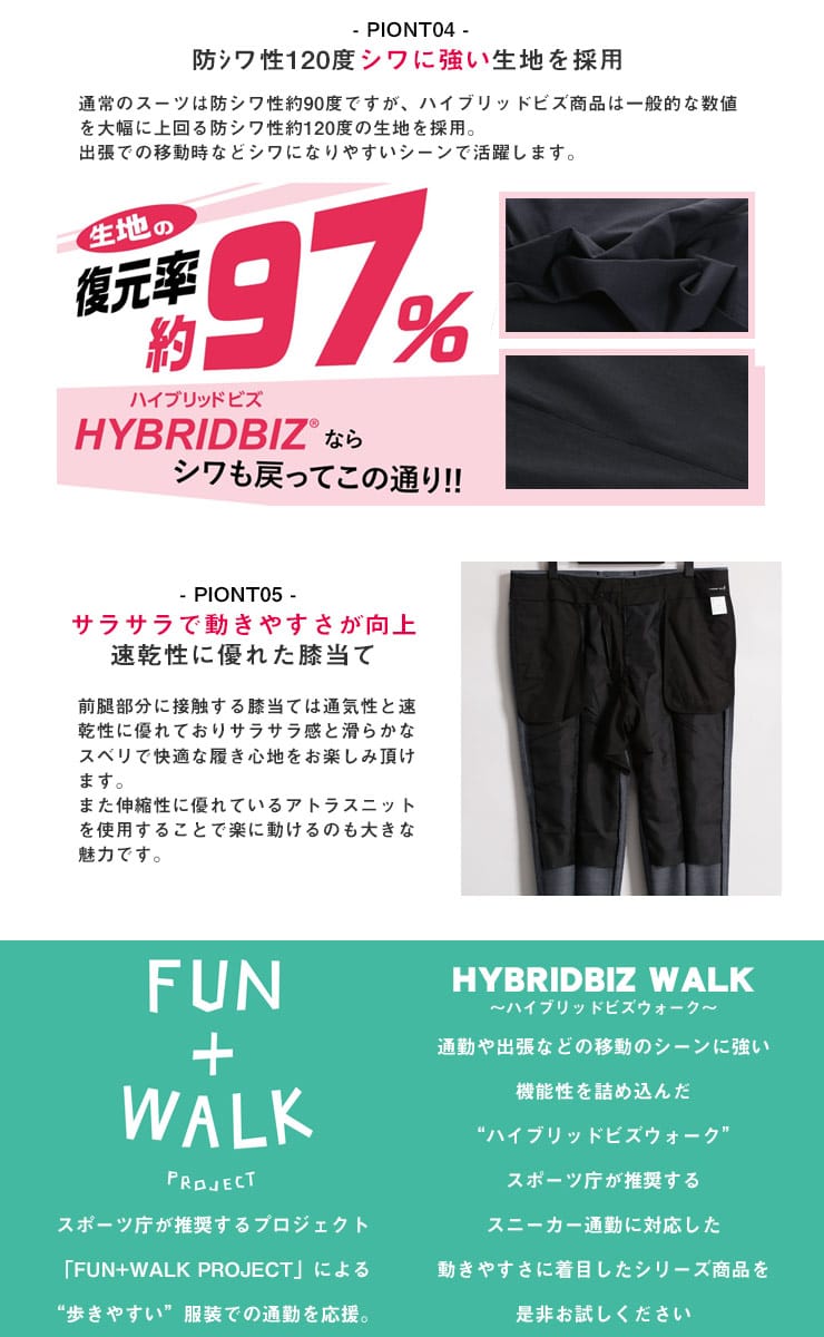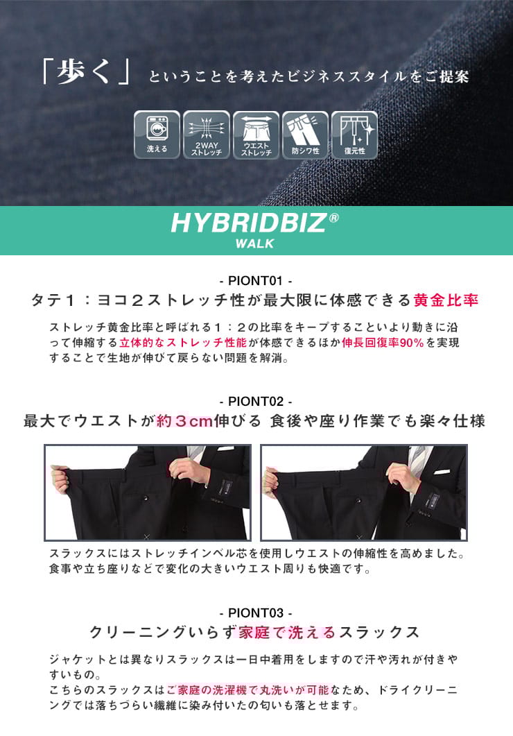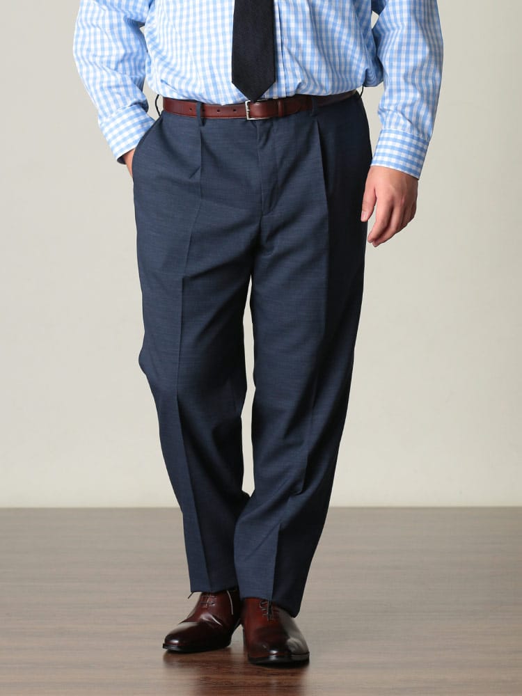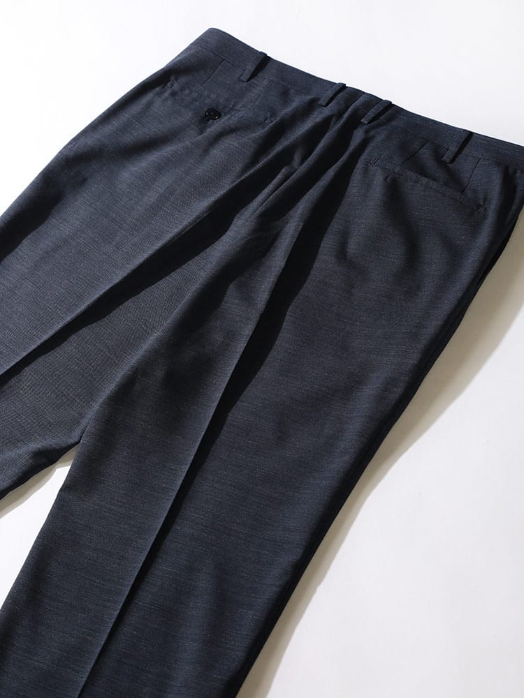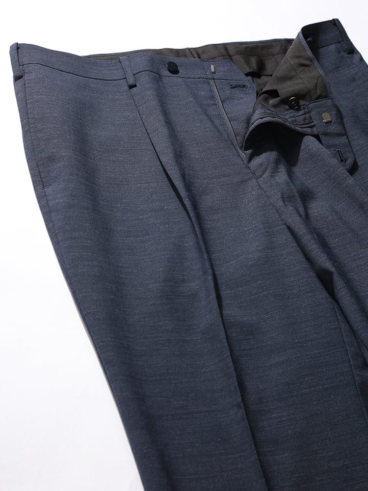 すっきりとしたシルエットが魅力的なHYBRIDBIZ「ハイブリッドビズ」のワンタックスラックスです。洗練された印象で品がありスタイリッシュに穿いていただけるアイテム。ご家庭でお手軽にお手入れが出来るウォッシャブル機能付き。ウール混の上品な素材を使用。シンプルなデザインでお手持ちのジャケットと合わせてジャケパンスタイルもお楽しみいただけます。