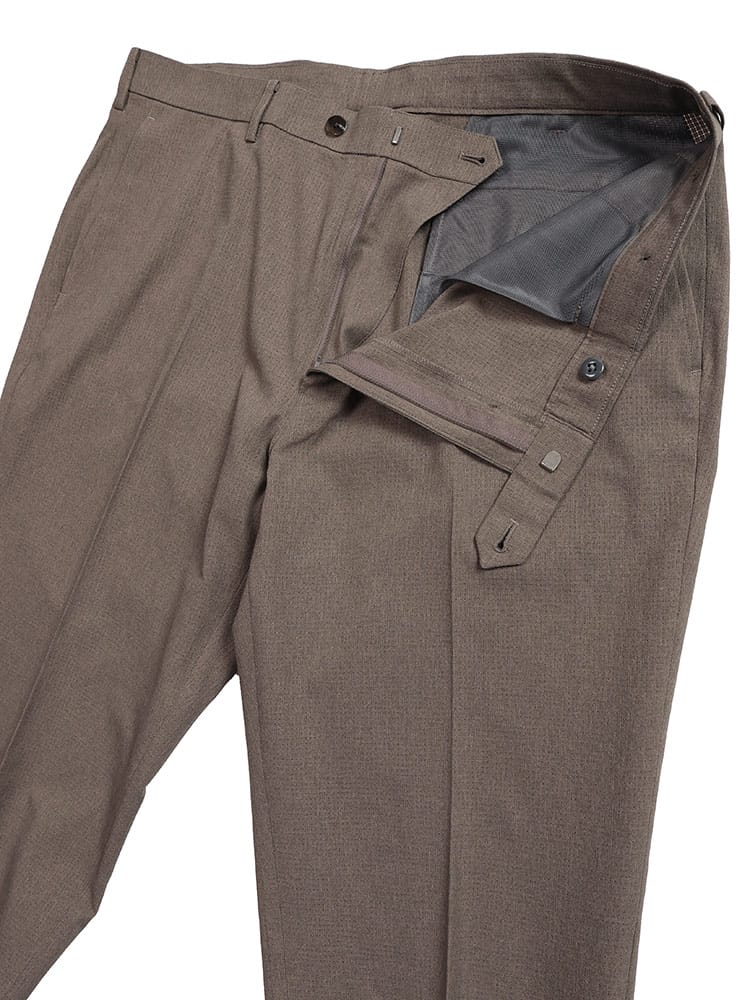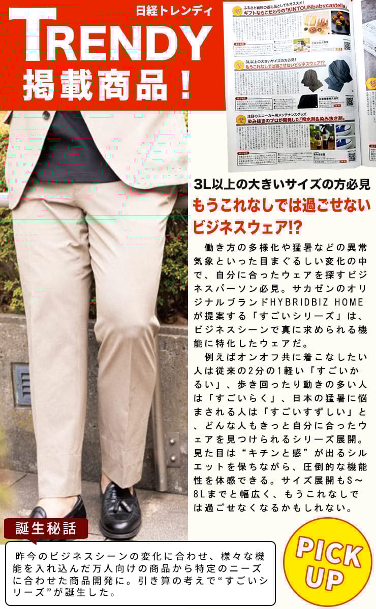 従来の商品より1/2も軽いHYBRIDBIZのストレッチ メッシュ ノータック スラックスです。ストレッチ性と涼感性のある生地で快適な着用感を提供します。ベーシックな上品なデザインでお手持ちのジャケットと合わせたジャケパンスタイルにもおすすめです。