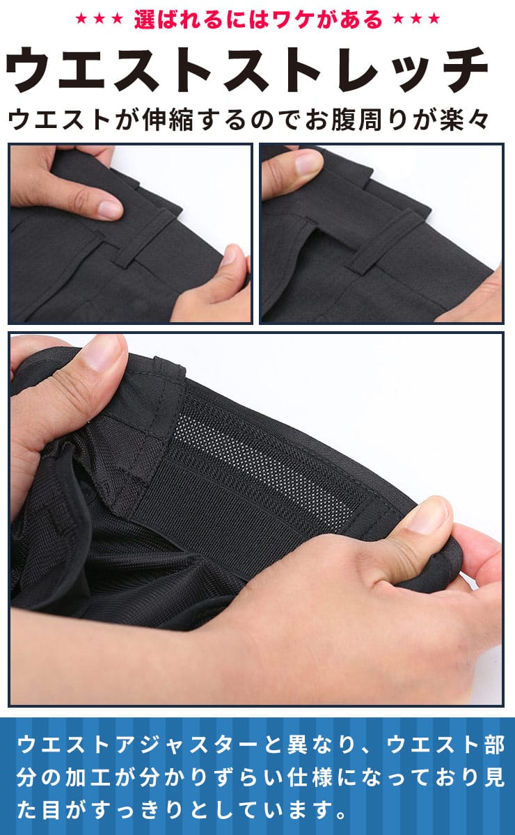 仕様 :外側ポケット数×4つ / ジップフライ / ウエストストレッチ / ツータック