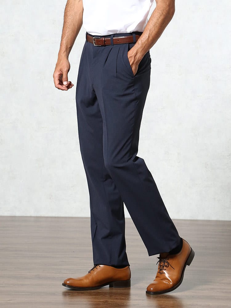 涼しく快適な涼感クールのストレッチ シャドーストライプ ツータック スラックスです。シャドーストライプデザインで品のあるスタイリッシュな印象を与えてくれます。ご自宅でお手入れのできるウォッシャブル機能付き。ストレッチがあるので快適な着用感なのも魅力です。