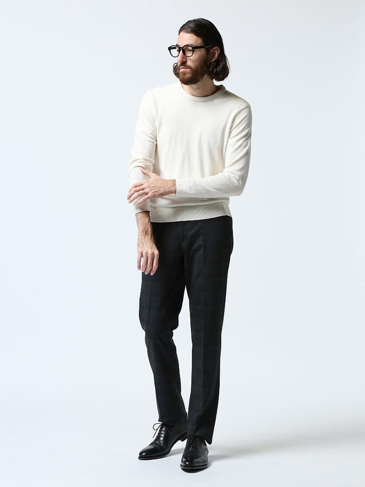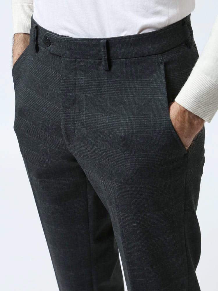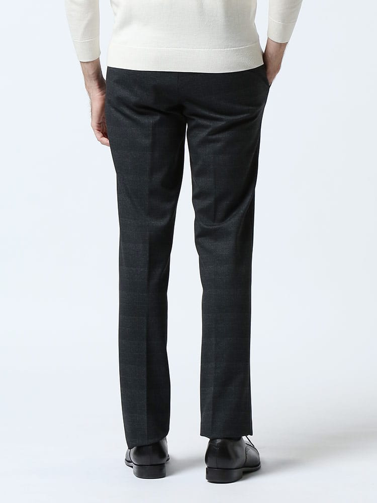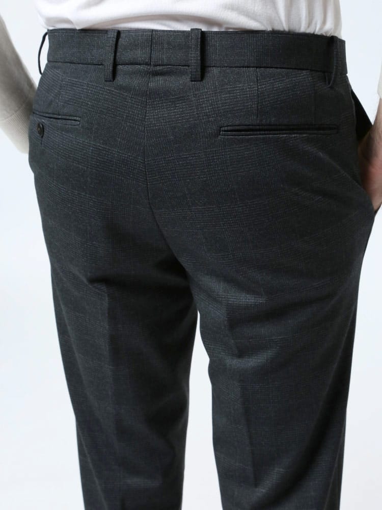 品のあるチェック柄で仕上げた裏起毛 ストレッチ チェック ノータック スラックスです。ノータックでスッキリとした印象のアイテム。ストレッチ性があるのでフィット感のある快適な着用感です。裏起毛で保温性に優れているのもポイントです。