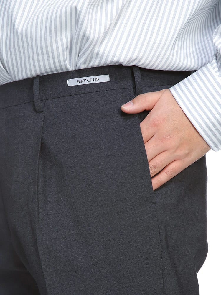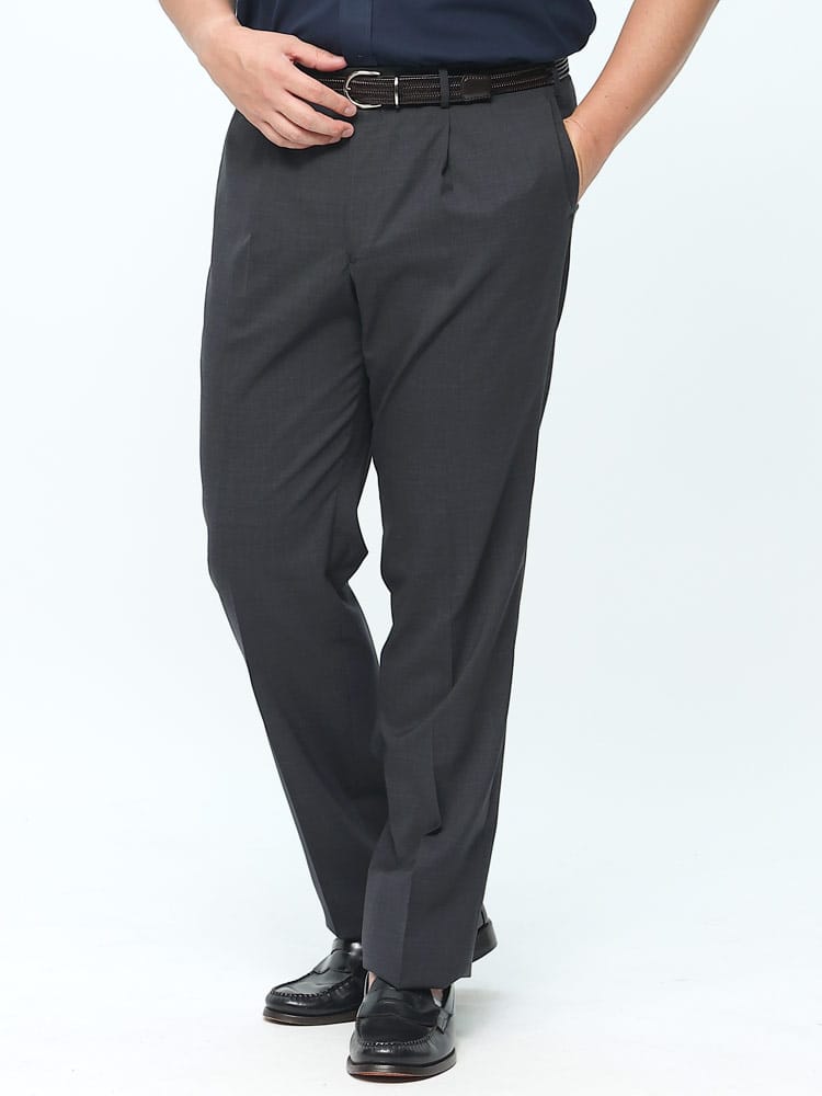 すっきりとしたシルエットなワンタックスラックスです。洗練された印象で品がありスタイリッシュに穿いていただけるアイテム。ベーシックな無地デザインでお手持ちのジャケットと合わせてジャケパンスタイルもお楽しみいただけます。