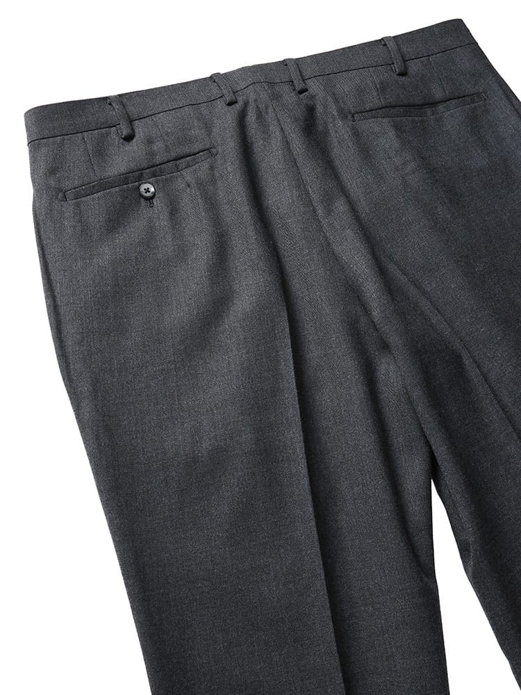 すっきりとしたシルエットなワンタックスラックスです。洗練された印象で品がありスタイリッシュに穿いていただけるアイテム。ベーシックな無地デザインでお手持ちのジャケットと合わせてジャケパンスタイルもお楽しみいただけます。