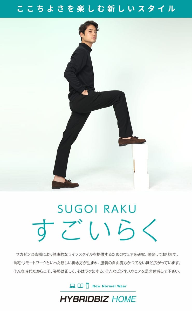 従来の商品より2倍伸びるすごいらくストレッチのノータック パンツです。ノータックデザインでゆとりのあるデザイン。ベーシックなデザインで大人のカジュアルスタイルやジャケパンスタイルにおすすめです。