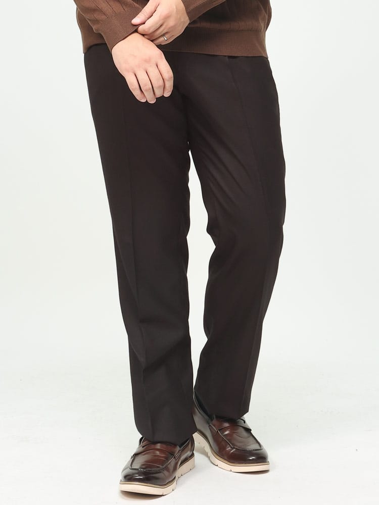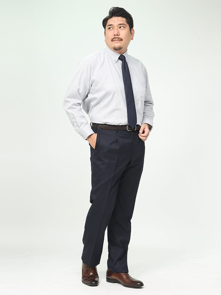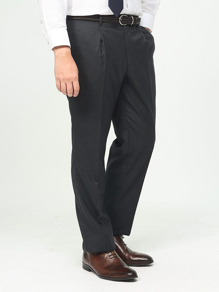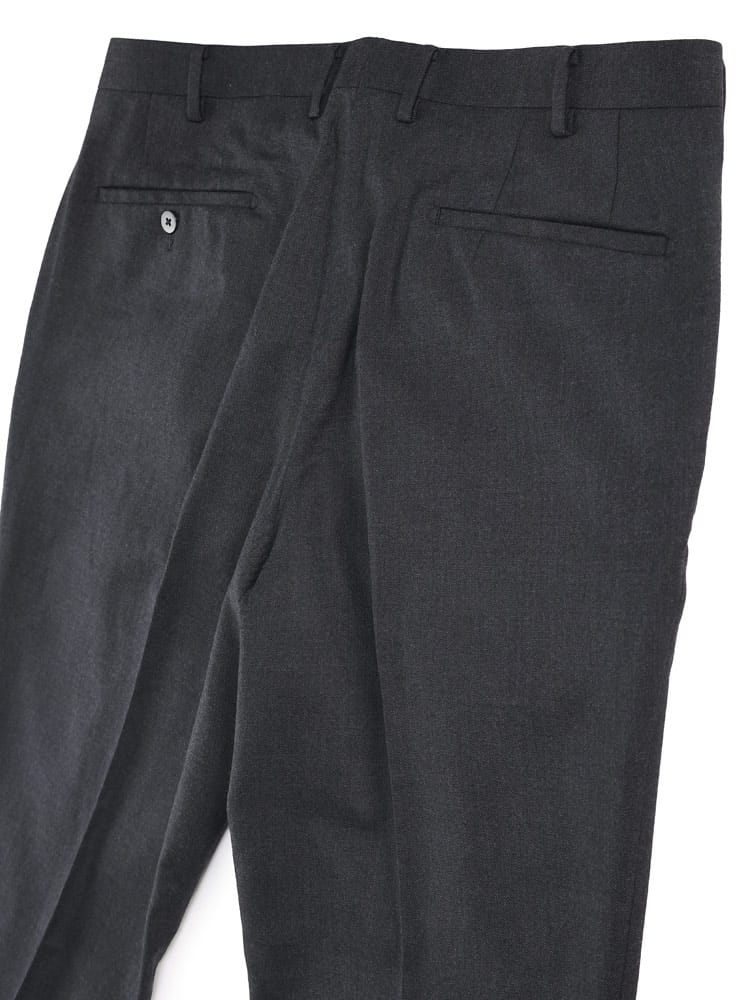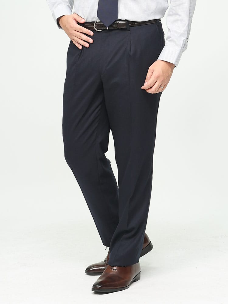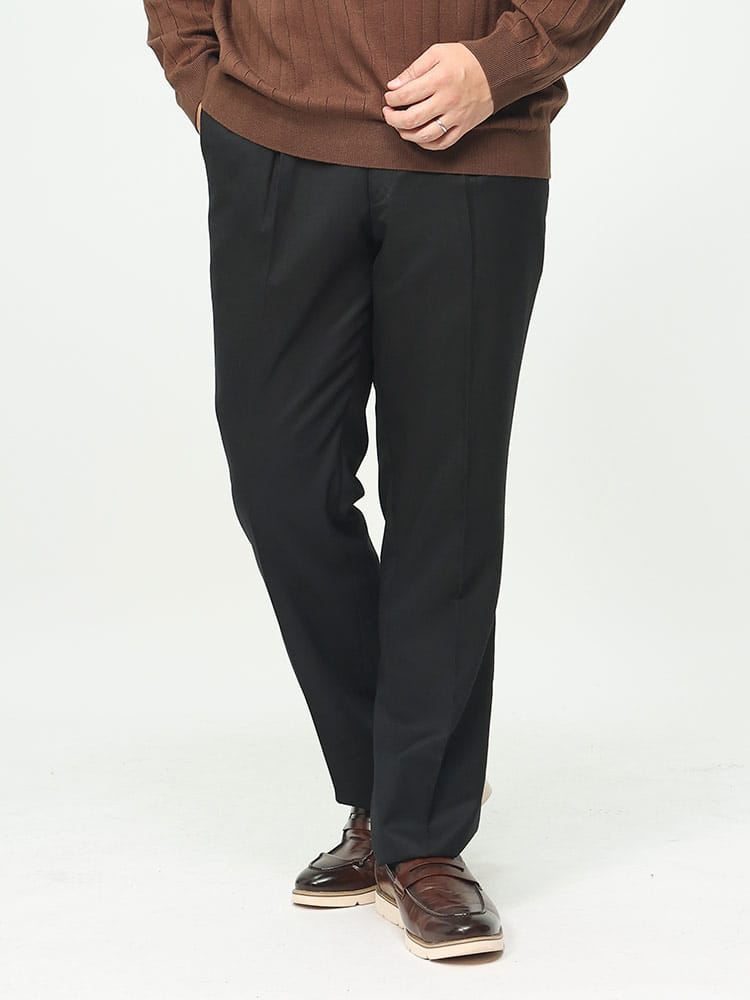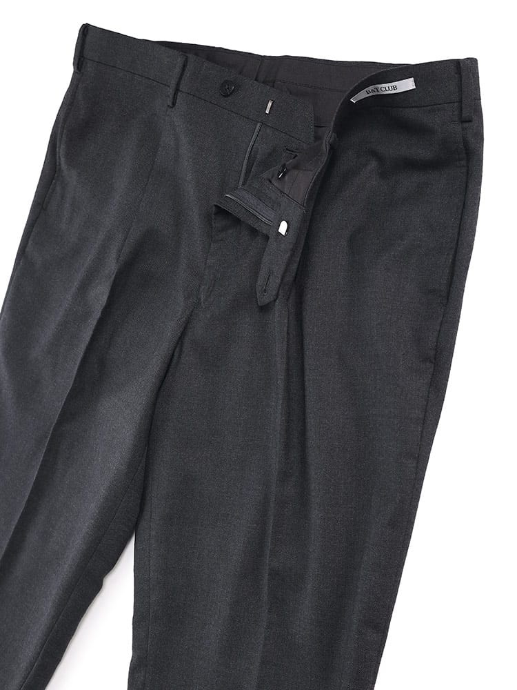 B&T CLUBの無地ワンタックスラックス。シンプルな定番の、ゆとりあるワンタックタイプとなっています。ウールとポリエステルの混合素材は、ウールの暖かさと風合いを保ちつつ、ポリエステルの耐久性とメンテナンスの容易さを組み合わせたもので、ビジネスだけでなく、カジュアルな場面でも活躍してくれる一本。