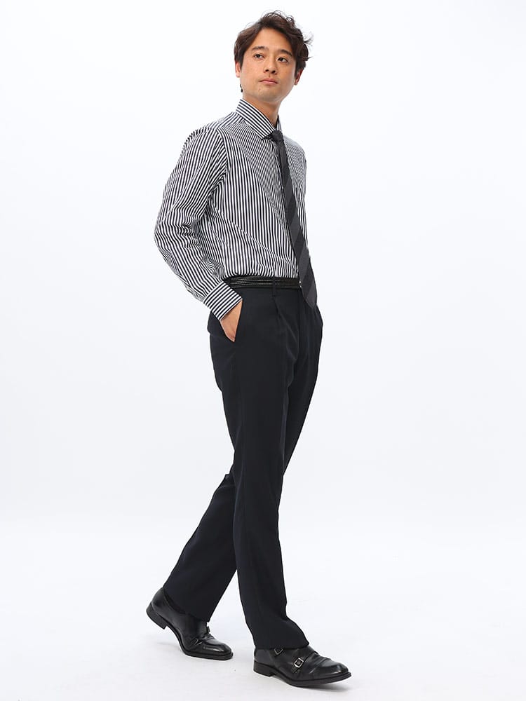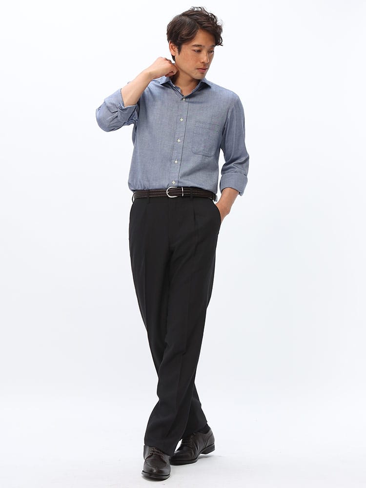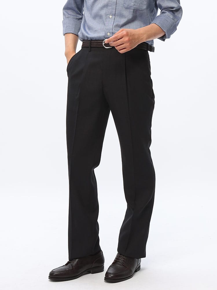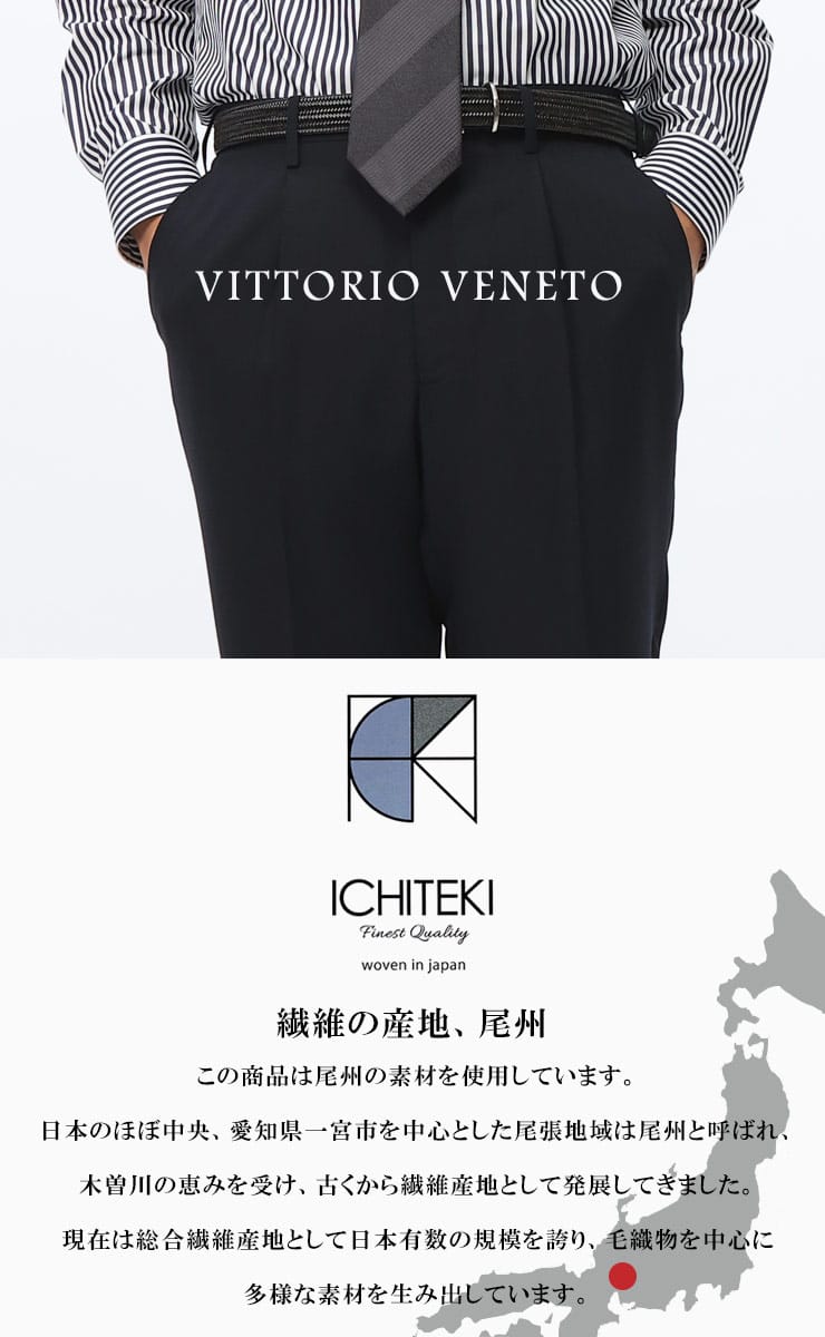「JAPAN FABRIC イチテキ ワンタック スラックス」は、尾州繊維を使用し、古来からの伝統を現代のシルエットに仕立て上げた逸品です。[BISHU JAPAN ICHITEKI]の名にふさわしい、最高品質の素材が使用されています。品質の高い尾州産ウール混紡素材を使用しております。一本一本の繊維にこだわり、肌触りが柔らかく、快適な着心地を実現しています。デザインにはワンタックを採用し、すっきりとしながらも動きやすいシルエットを提供します。ビジネスシーンからカジュアルまで、幅広く活躍するアイテムです。