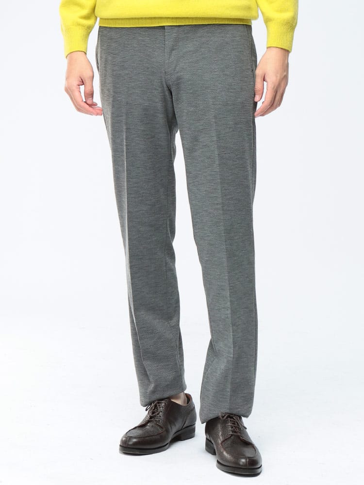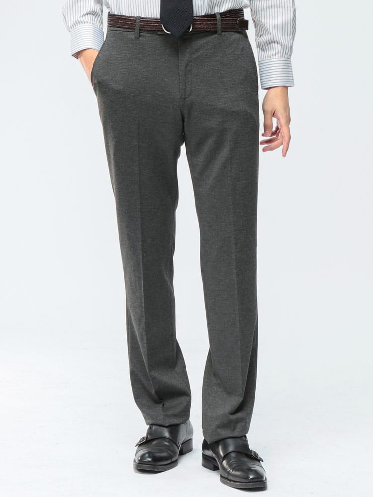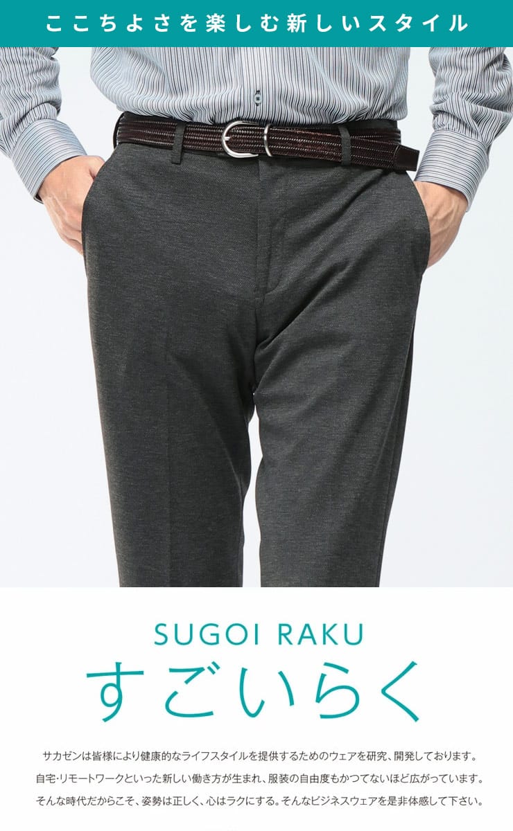 驚きの快適さ「すごいらく」ニットパンツ。ビジネスウェアに革命を起こす HYBRIDBIZ の「すごいらく」ニットパンツ。スラックスの端正な見た目と、ジャージのような抜群のストレッチ性を融合させました。ポリエステル・レーヨン・ポリウレタンの混紡素材が、縦横無尽に伸びるストレスフリーな穿き心地を実現。一日中デスクワークでも、外回りでも、まるでスウェットのような楽さで身体をサポートします。ノータックのきれいめなデザインで、ON/OFF問わず穿ける万能性。ジップフライと計4つの外側ポケットを備え、機能性も抜かりありません。紳士のビジネススタイルを格上げしつつ、最高のリラックスを提供。もう、窮屈なパンツには戻れません。