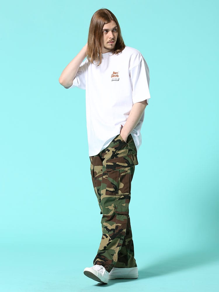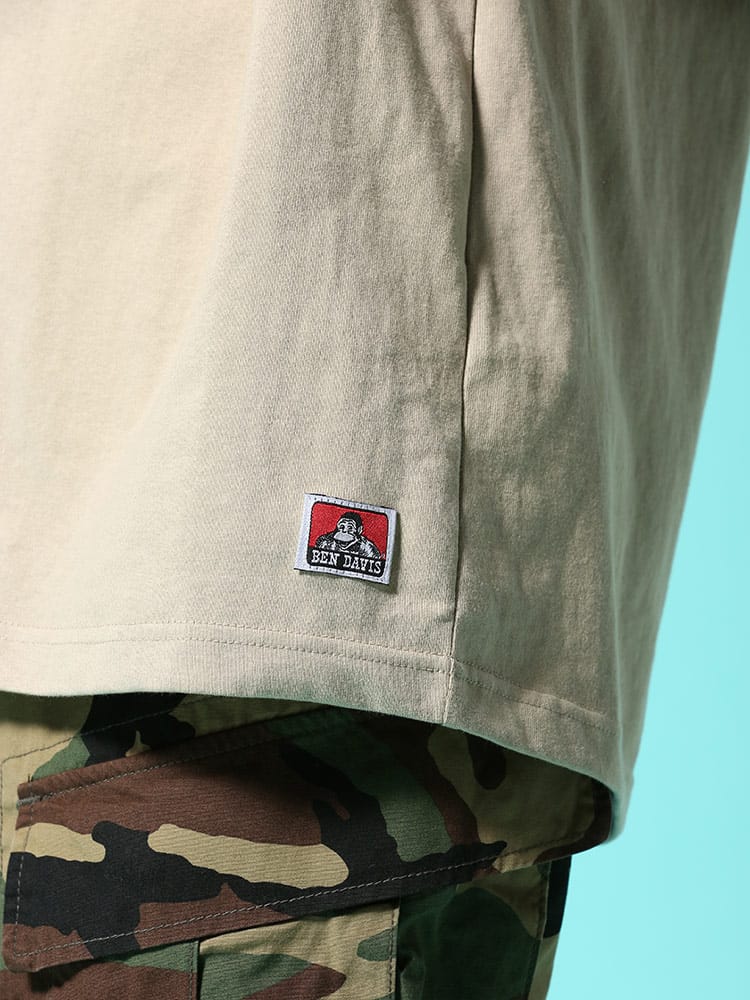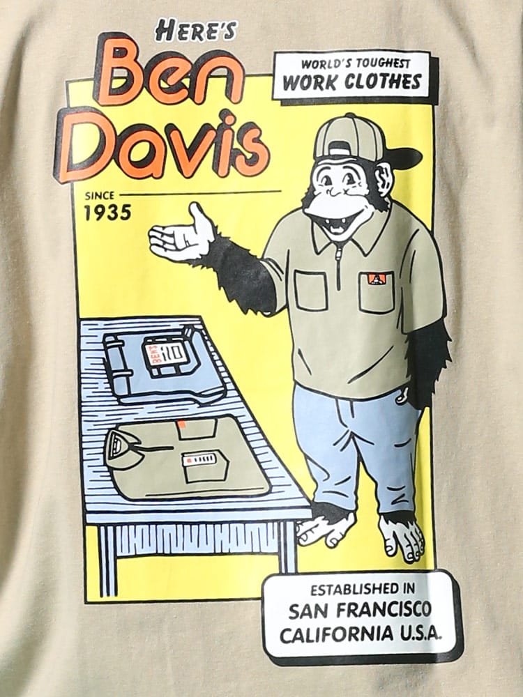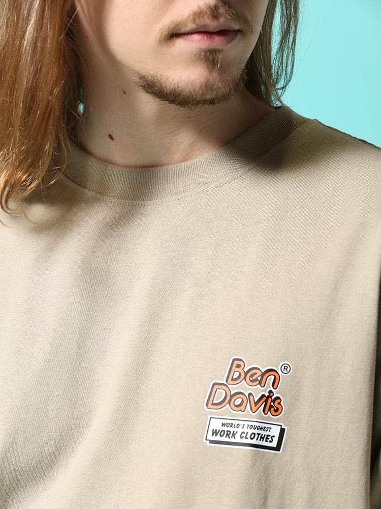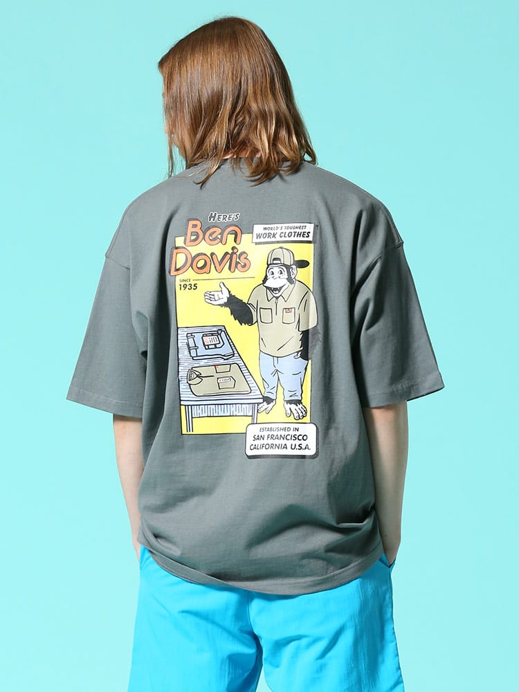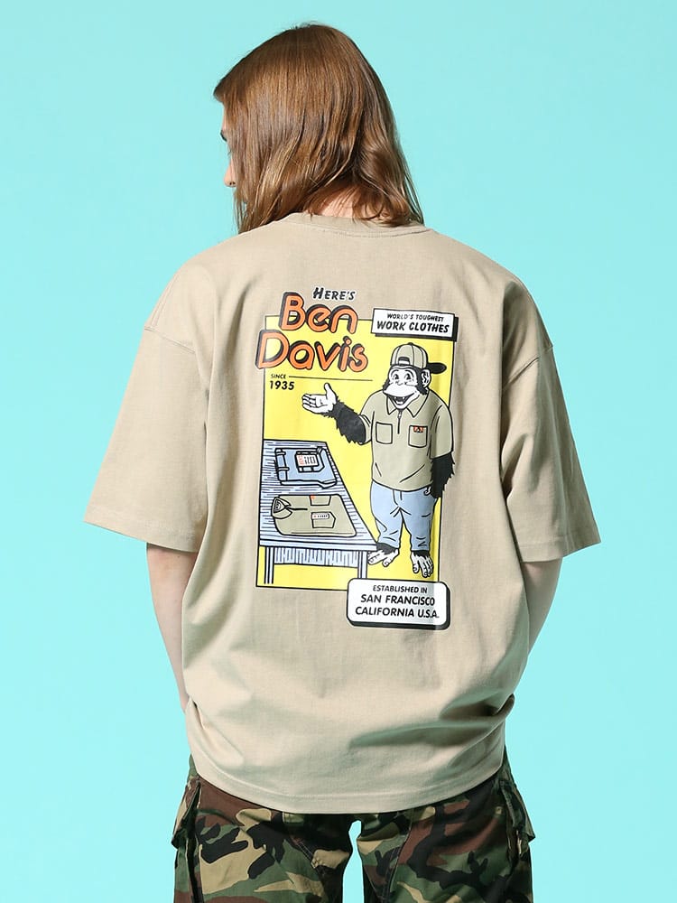 バックBIGプリントが目を引くBEN DAVISのクルーネック 半袖 Tシャツ。フロント左胸のロゴもポイントです。左裾にブランドタグ付き。首元はベーシックなクルーネック。シッカリトシタコットン生地を使用しているのでガシガシ着ていただけます。