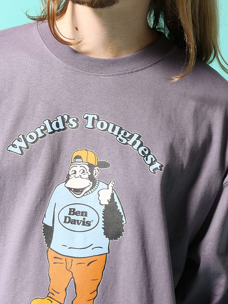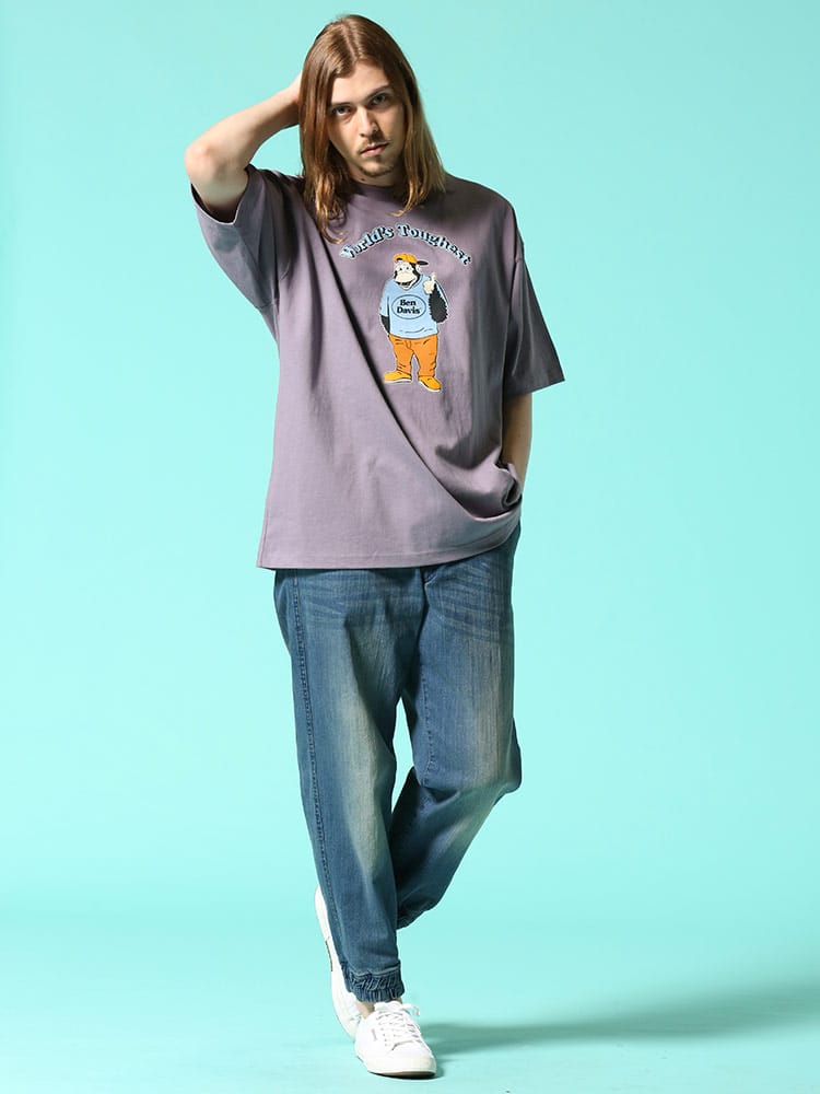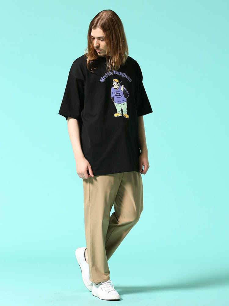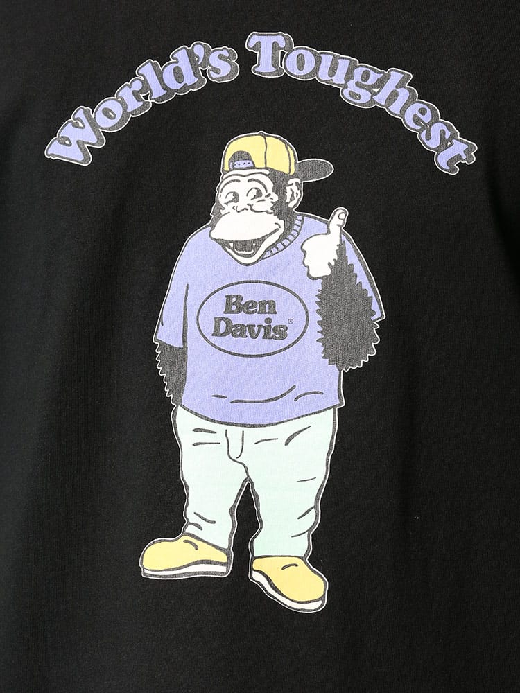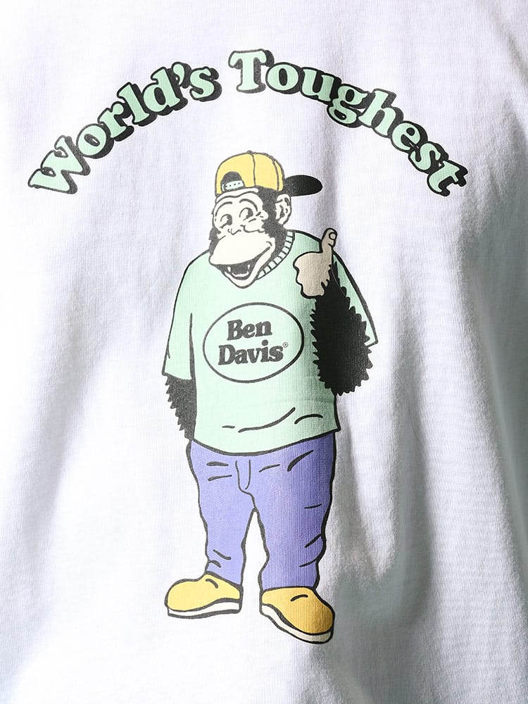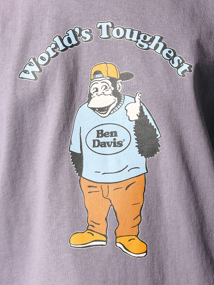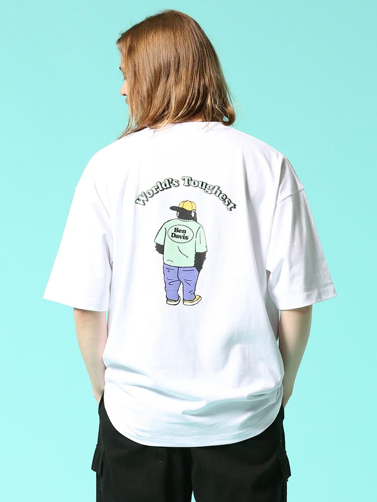 BENDAVISのクルーネック半袖Tシャツ。フロントとバックにアイコンのゴリラをプリントしたストリートシーンに映えるデザイン。首元はベーシックなクルーネック。左裾にタグ付き。肌触りの良いしっかりとしたコットン生地を使用し、ガシガシ着ていただけます。ビッグシルエット。