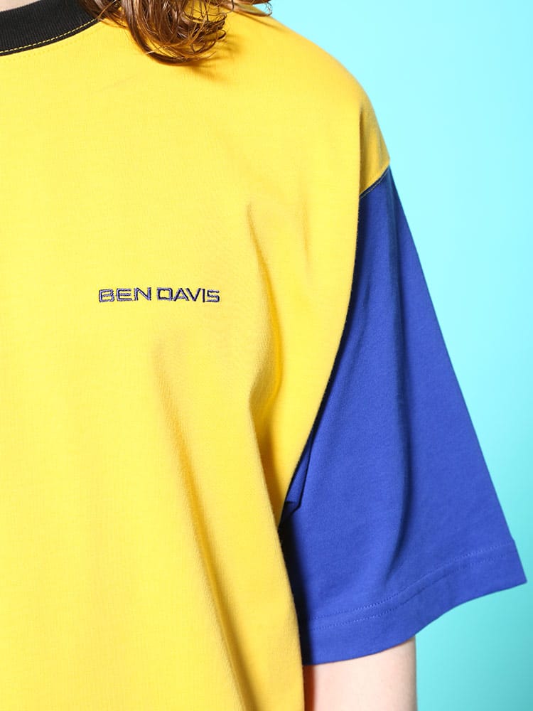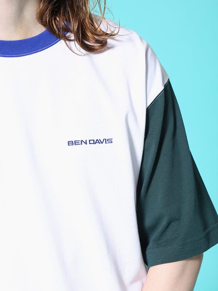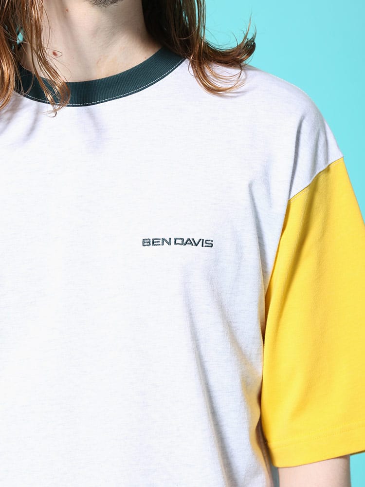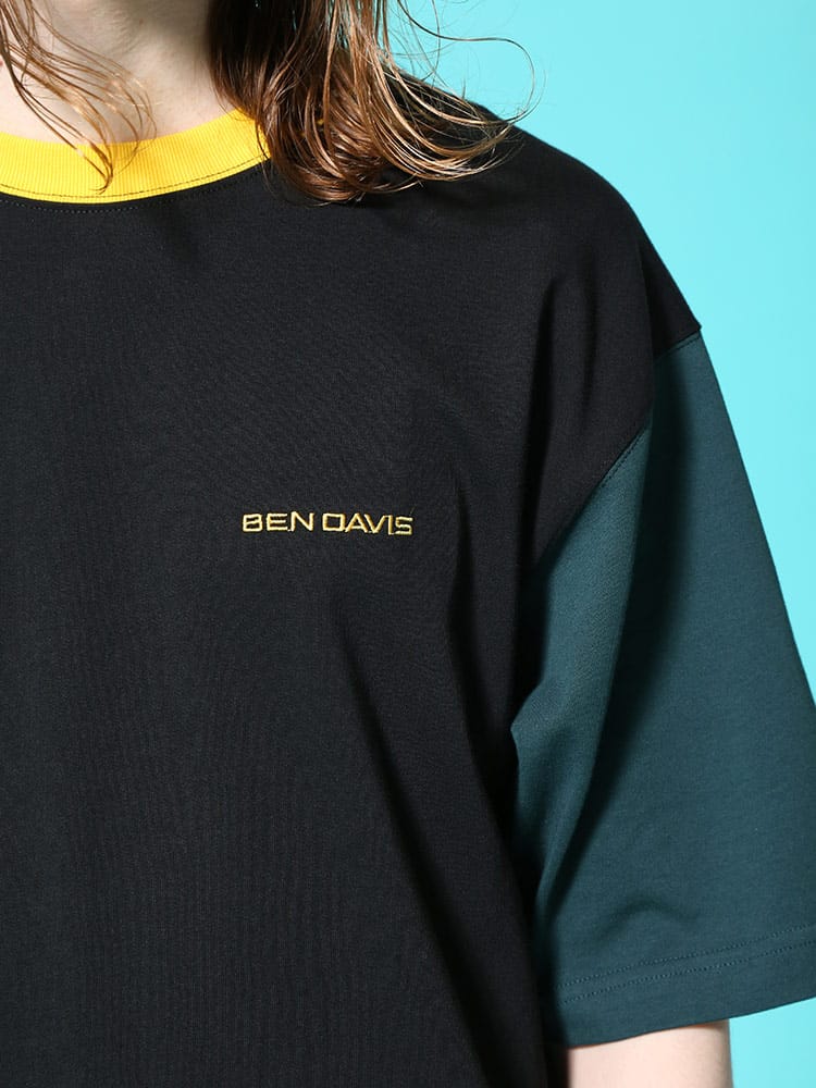 配色切り替えがお洒落なBEN DAVISのワンポイント クルーネック 半袖 Tシャツ。左胸のロゴ刺繍がポイント。首元はベーシックなクルーネックデザイン。ゆったりとしたオーバーサイズシルエット。肌触りの良いコットン生地を使用し、着心地抜群です。